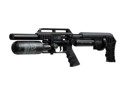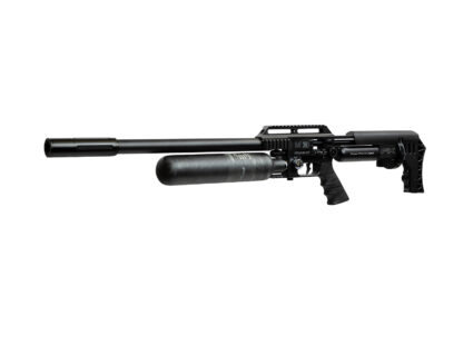 In addition to technological advances, the Delta Wolf has a fully modular tactical stock design. Weighing 3.1kg (6.8lbs) for the full-length 600mm barrel version and measuring 840mm (34”)the rifle is available in black or bronze and features an AR-style safety catch and pistol grip that can be swapped out for a compatible after-market alternative.