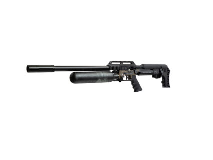 In addition to technological advances, the Delta Wolf has a fully modular tactical stock design. Weighing 3.1kg (6.8lbs) for the full-length 600mm barrel version and measuring 840mm (34”)the rifle is available in black or bronze and features an AR-style safety catch and pistol grip that can be swapped out for a compatible after-market alternative.