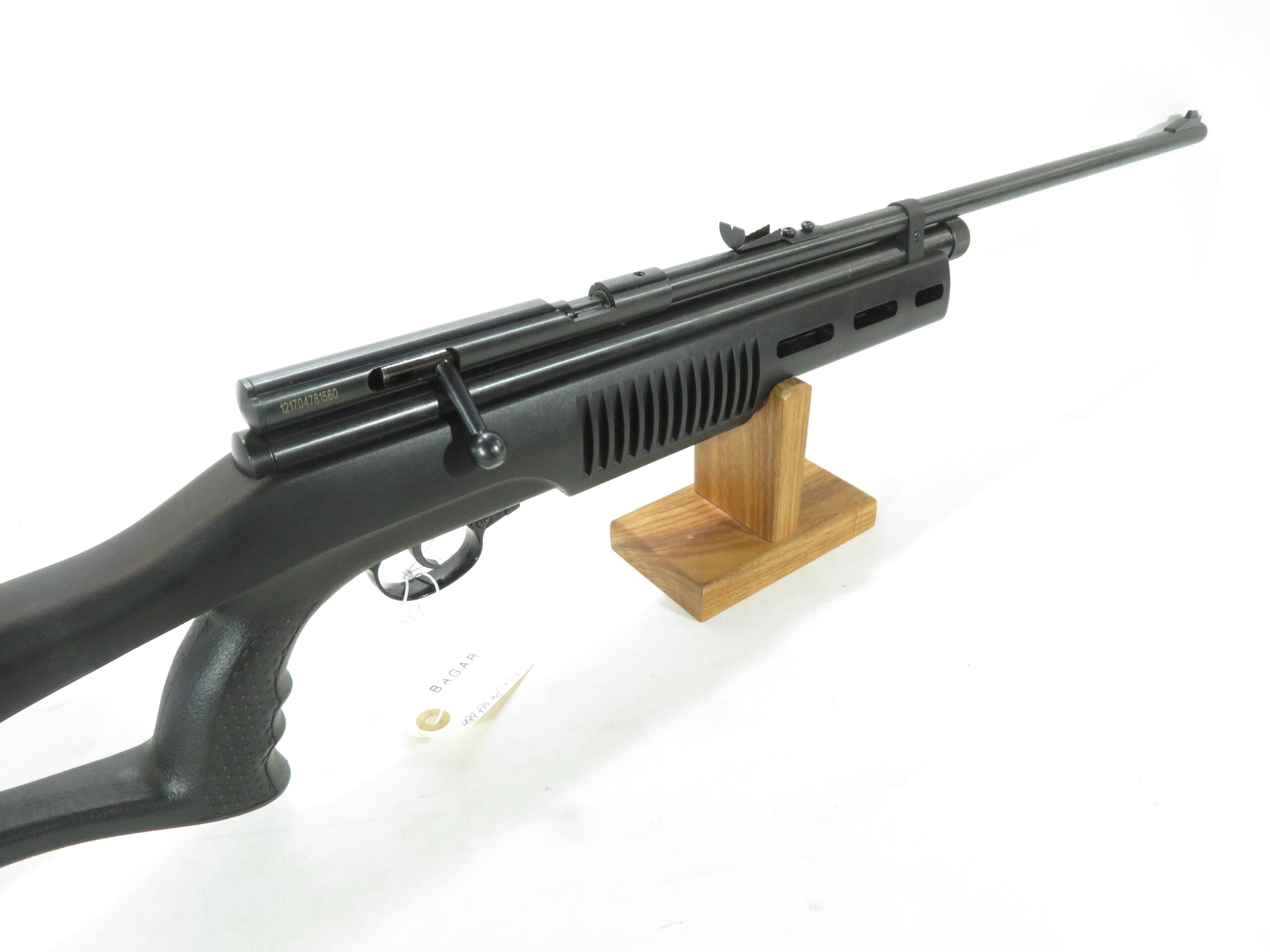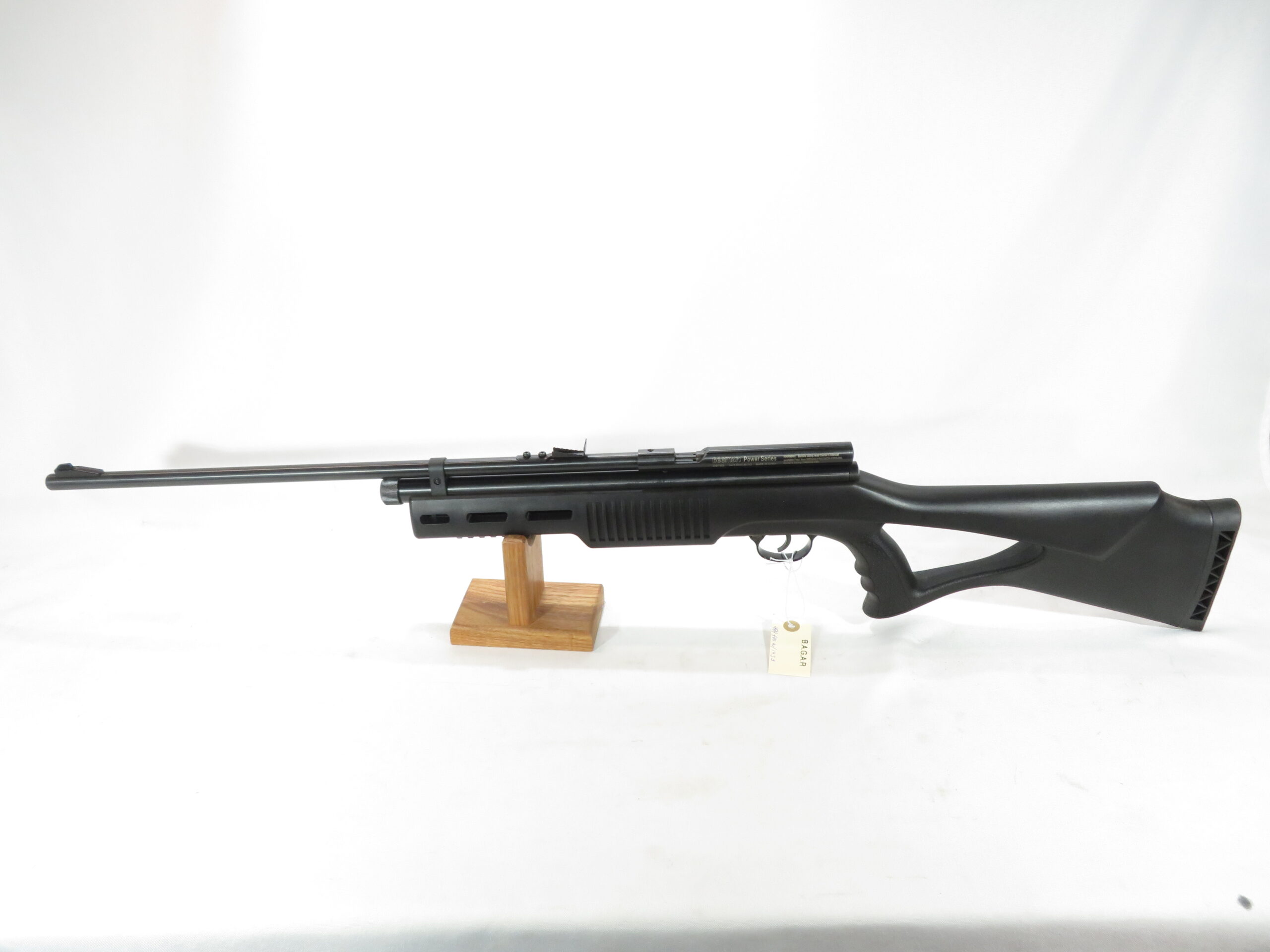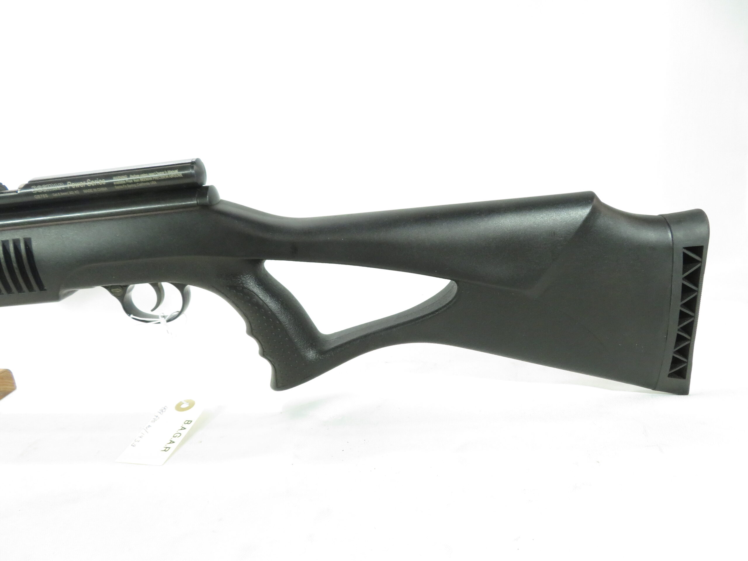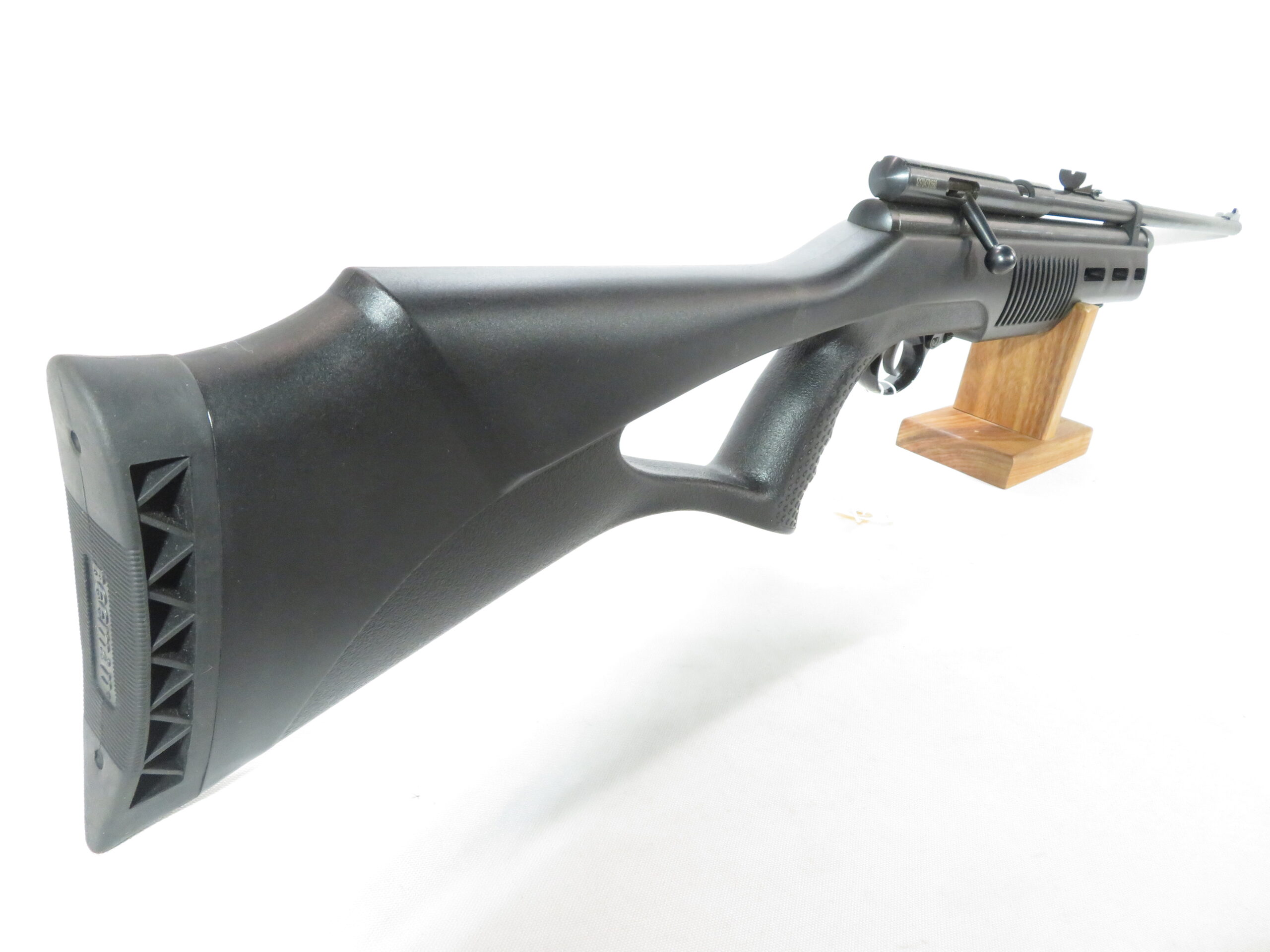This gun features an ergonomic thumb-hole stock with pistol grip for a stable, comfortable hold. Adjust the single stage trigger and rear sight to your preference. A great gun for plinking cans in your backyard or shredding paper targets.