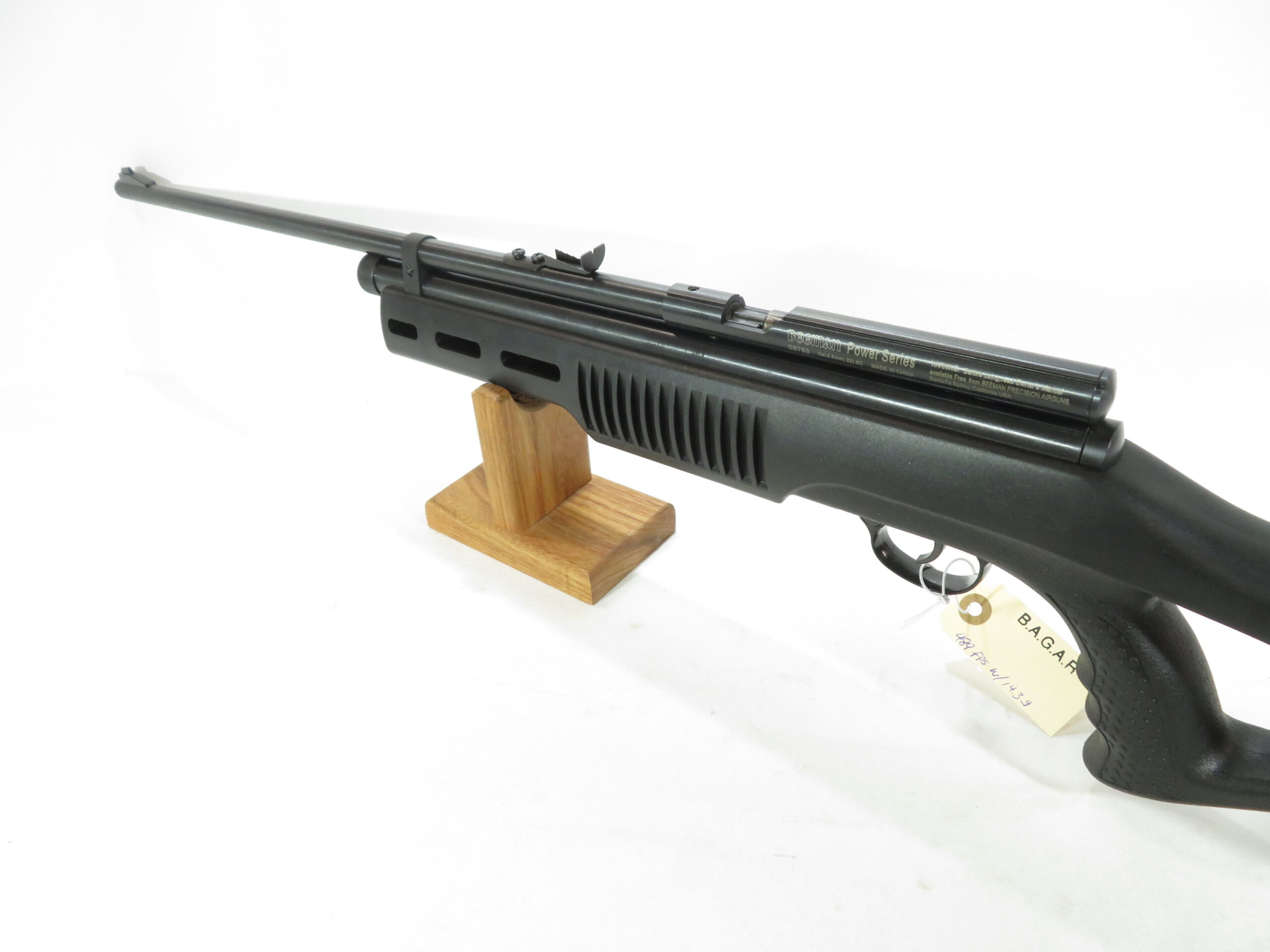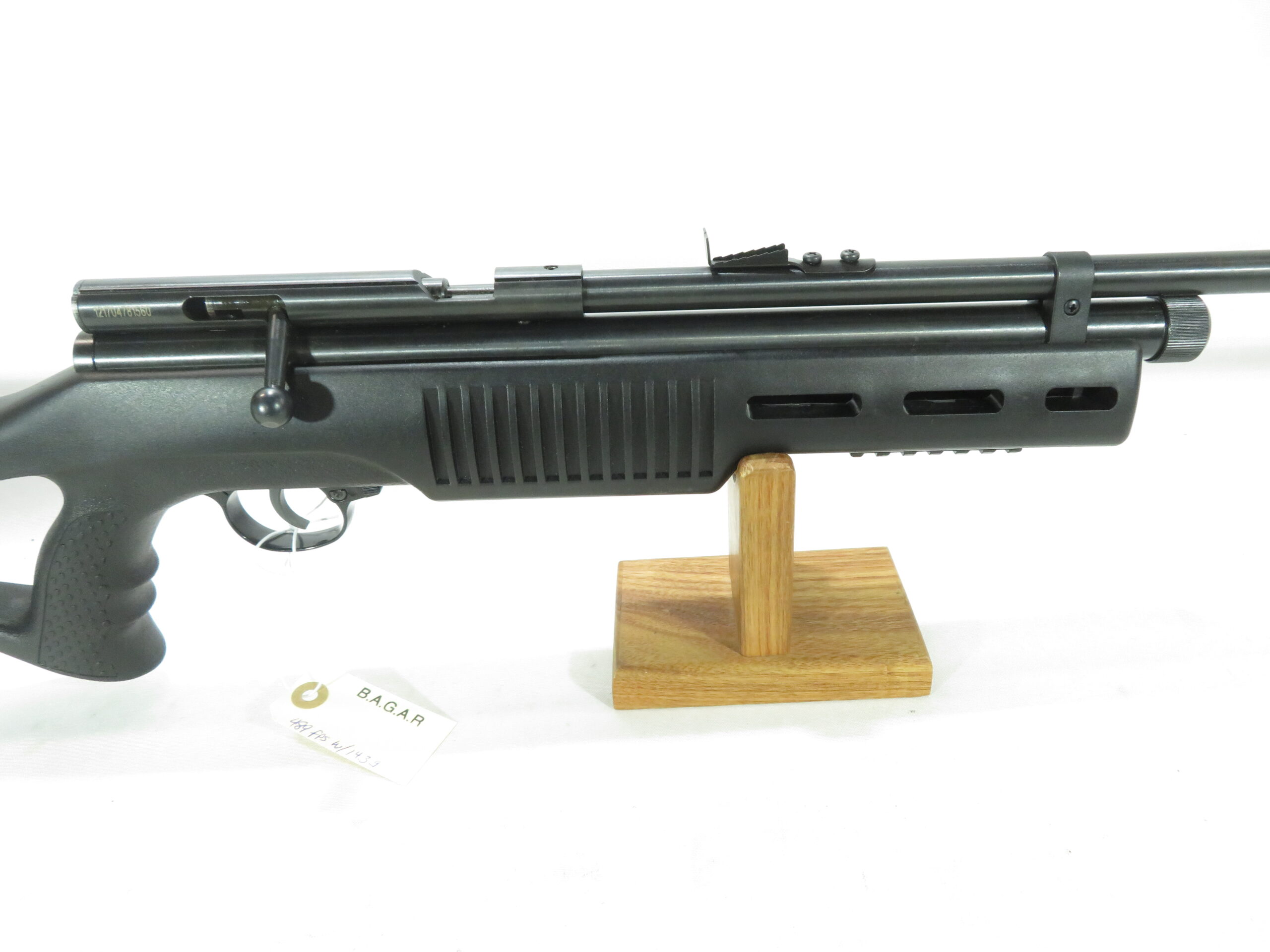 - Velocity tested at 489 fps using 14.3 gr pellets