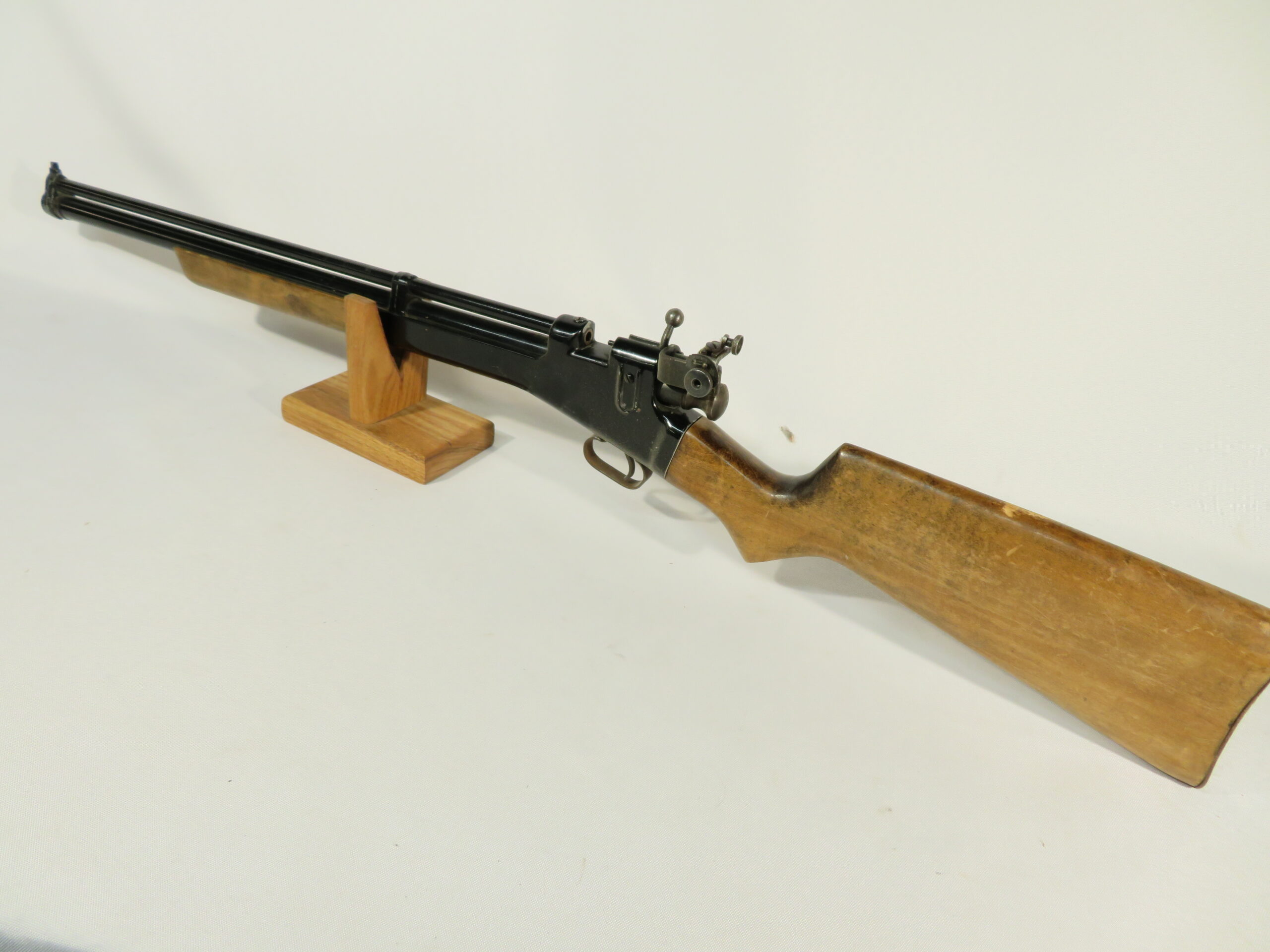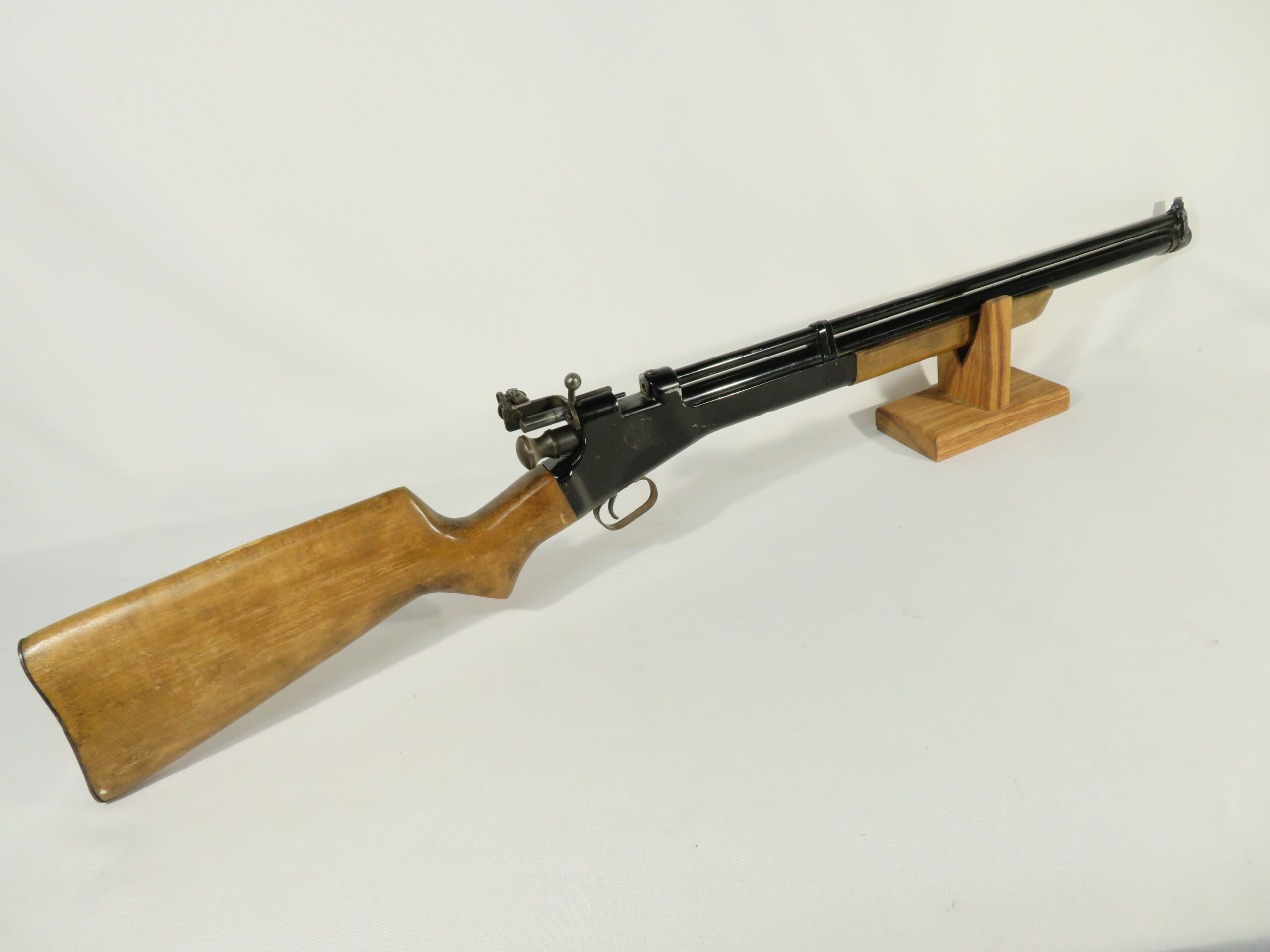 The metal retains close the 90% of the finish and also appears to be original. It is a great looking airgun.