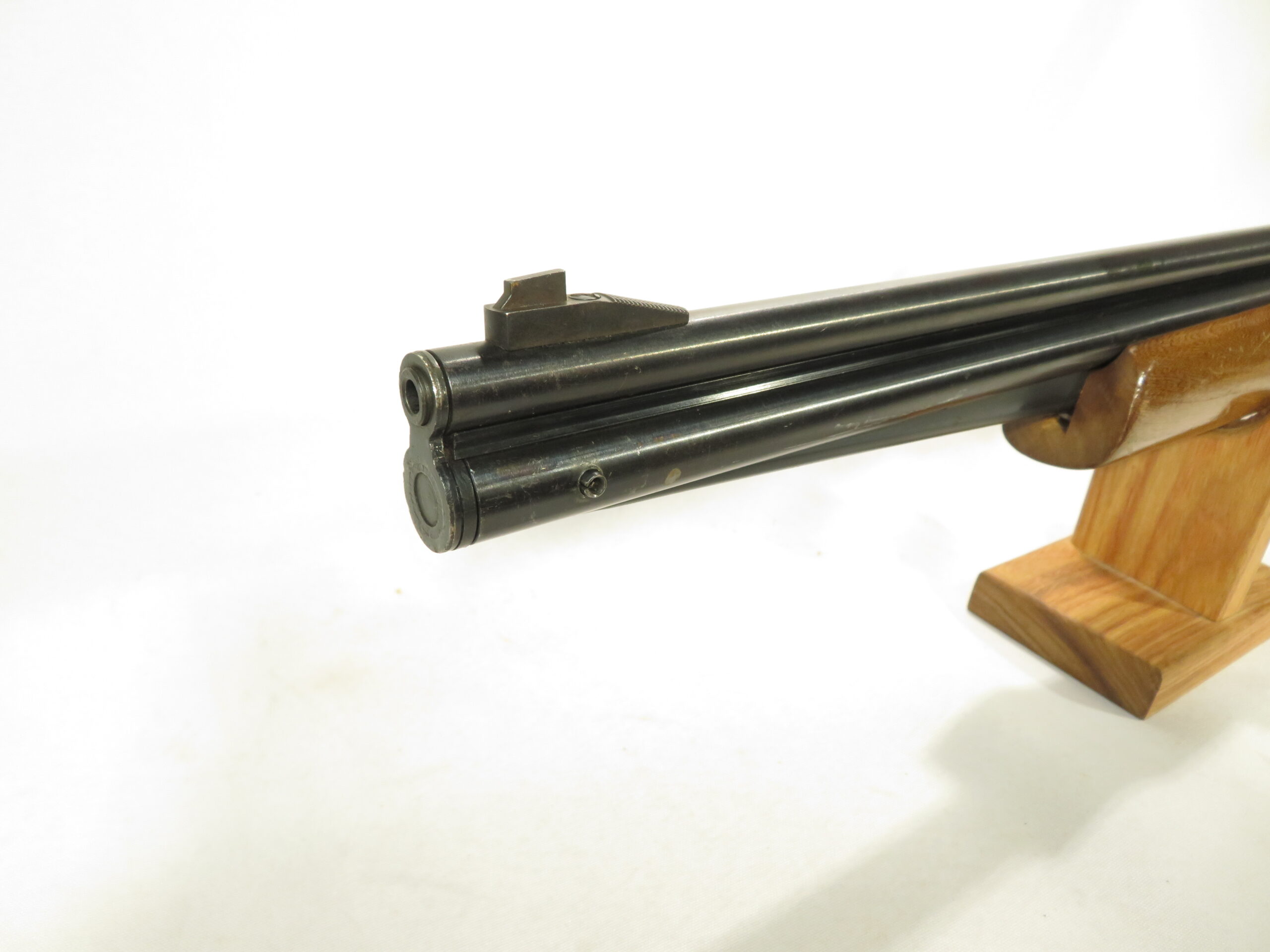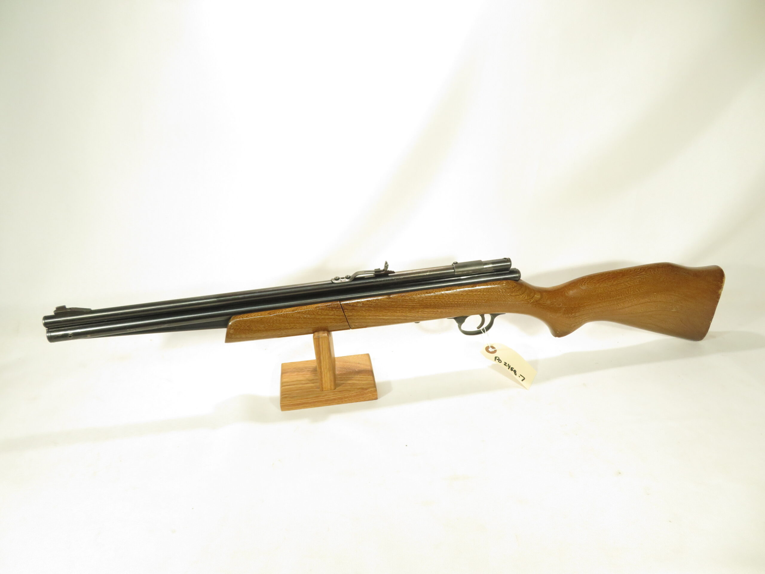 The Crosman 1400 is a .22 caliber, single shot, multi-pump pneumatic pellet rifle with a wood stock and forearm. It’s a highly sought after model for shooters who like to upgrade them for current field use. It’s becoming more and more difficult to find one of these rifles that are completely, or near completely original.