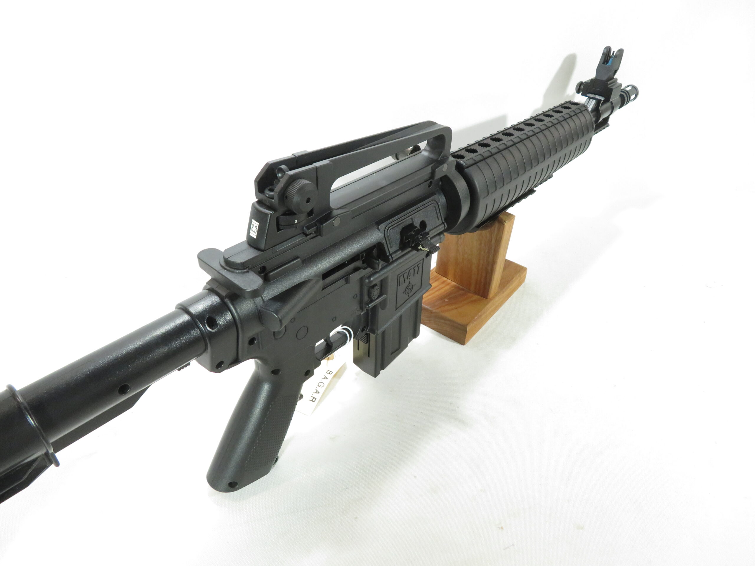 This Crosman M417 variable pump power control military replica style air rifle comes in the original box, and is in great condition. It shoots .177 caliber pellets, and has a 5 round clip, plus it shoots BB’s and comes with a 350 capacity BB reservoir clip. It also features an adjustable stock, removable dual aperture rear sight, and removable front post sight. Velocity was tested in our shop using lead pellets at 491 fps
