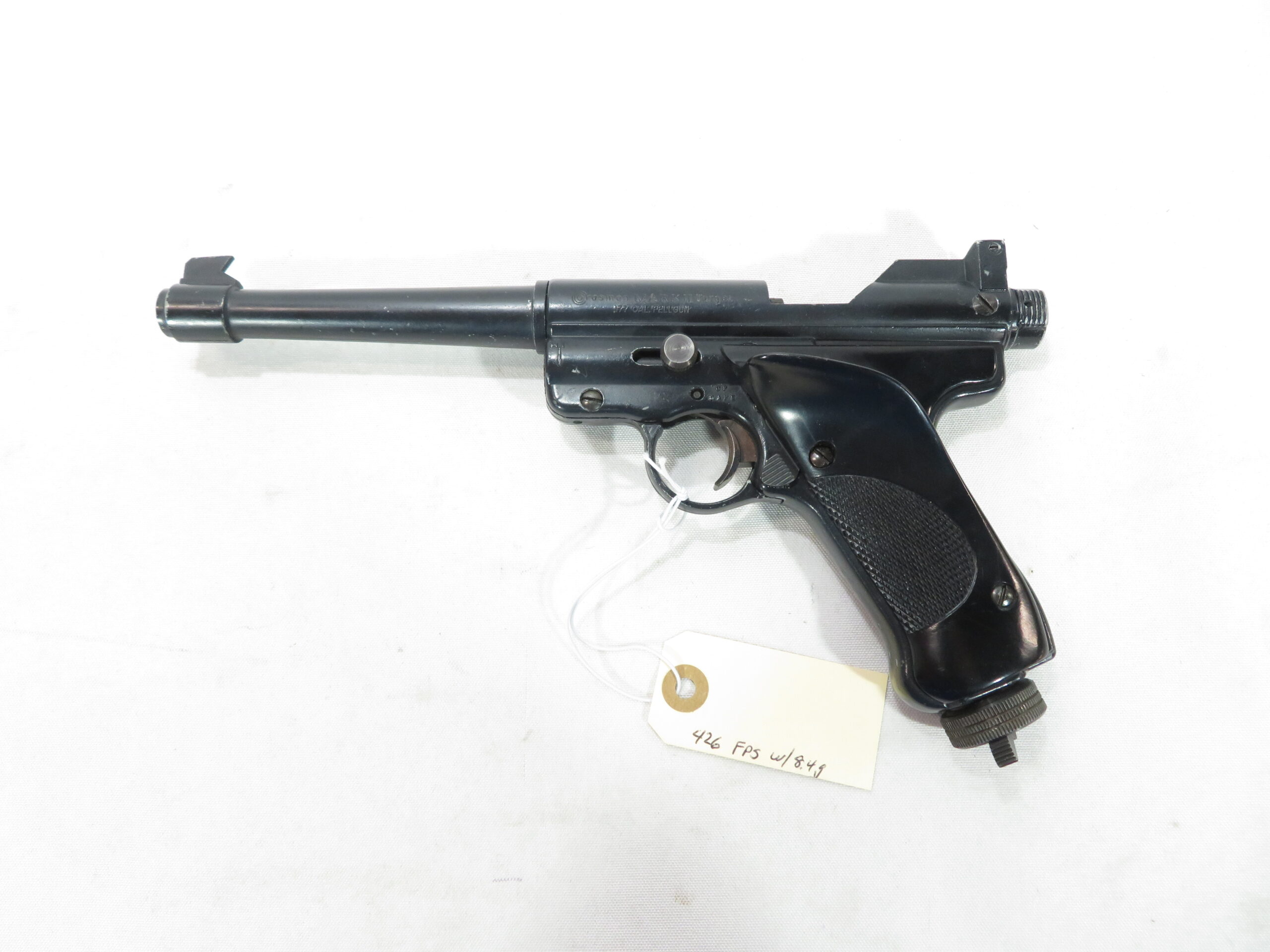 The Crosman Mark II pistol is a .177 caliber single shot Co2 air pistol that was made from 1966 to 1986. This was a very popular gun for Crosman for many years. These guns are very heavy, solid and rugged. They continue to be very popular with collectors and shooters because of there excellent accuracy.