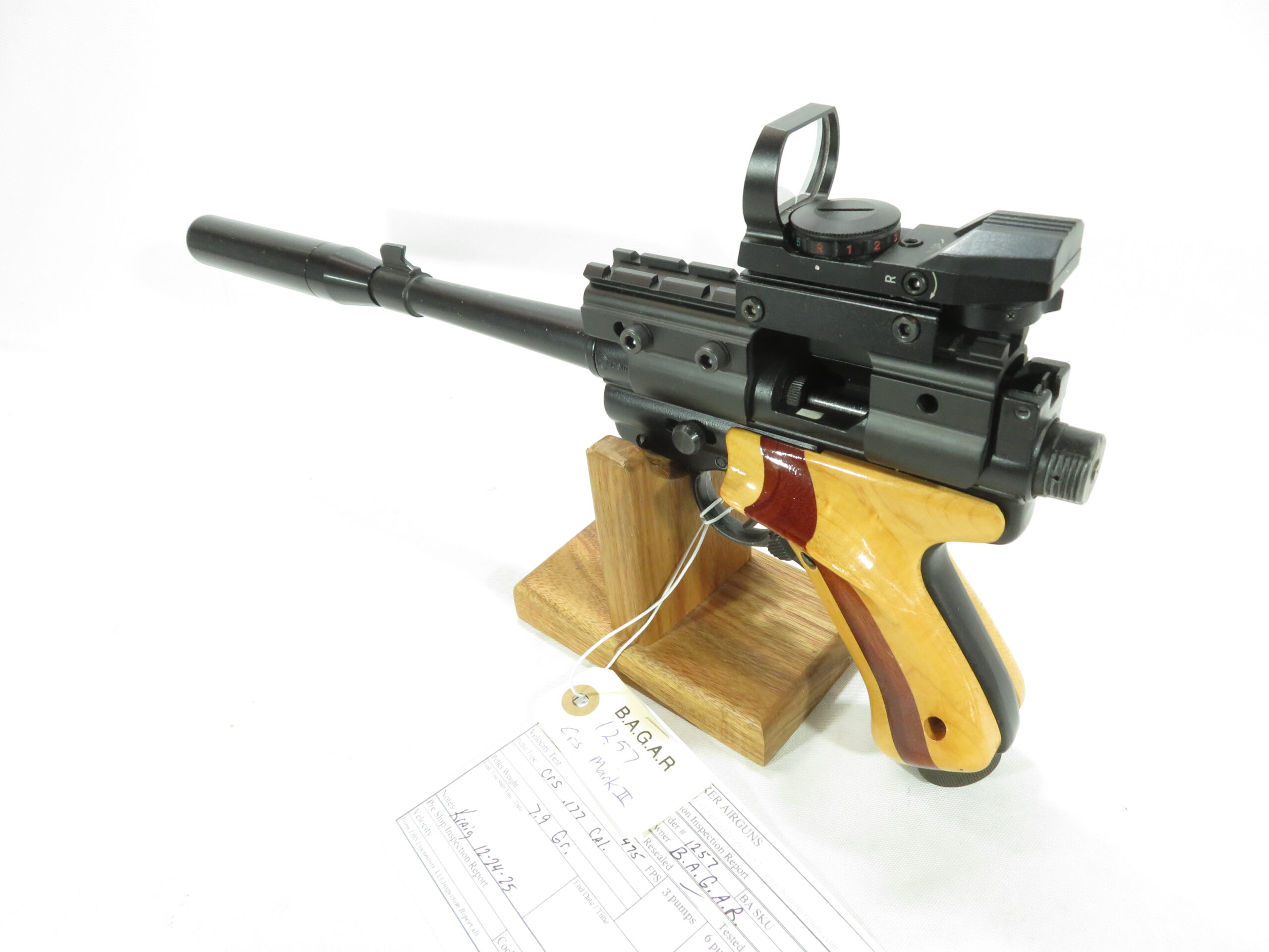 Includes custom riser and reflex red dot sight.