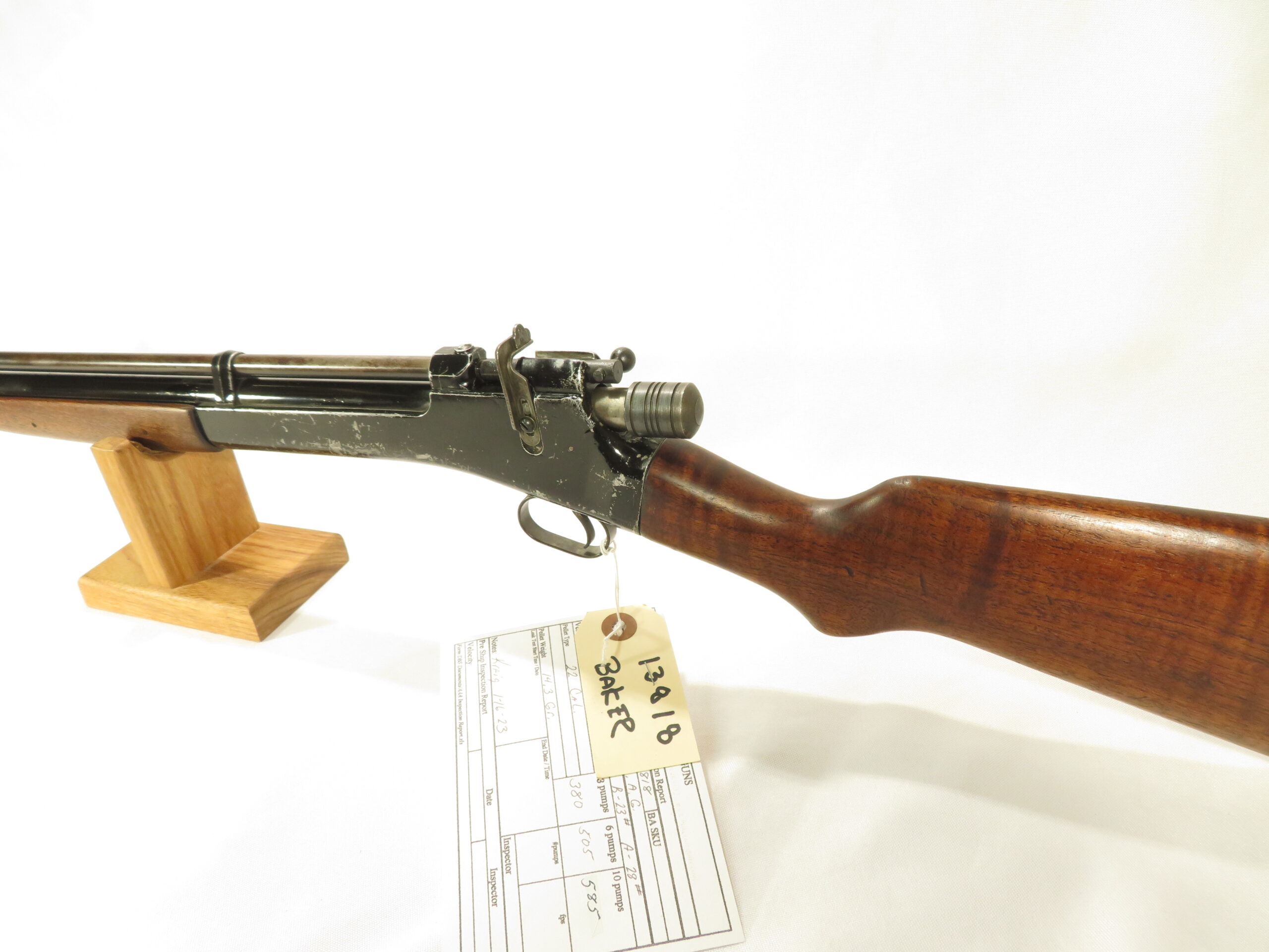 This gun was recently re-sealed in our shop .Velocity was tested at 585 fps with 14.3 gr lead pellets.