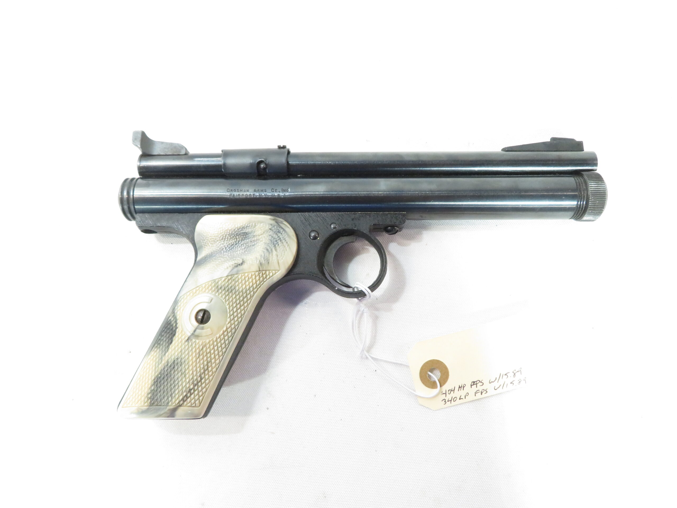 Crosman 150 CO2 Pellet Pistol SKU 102825.3 The Crosman model 150 pellet pistol is a .22 caliber single shot, CO2. These pistols were manufactured between 1956, and 1967. The metal on this gun retains about 80% of the original finish,...
