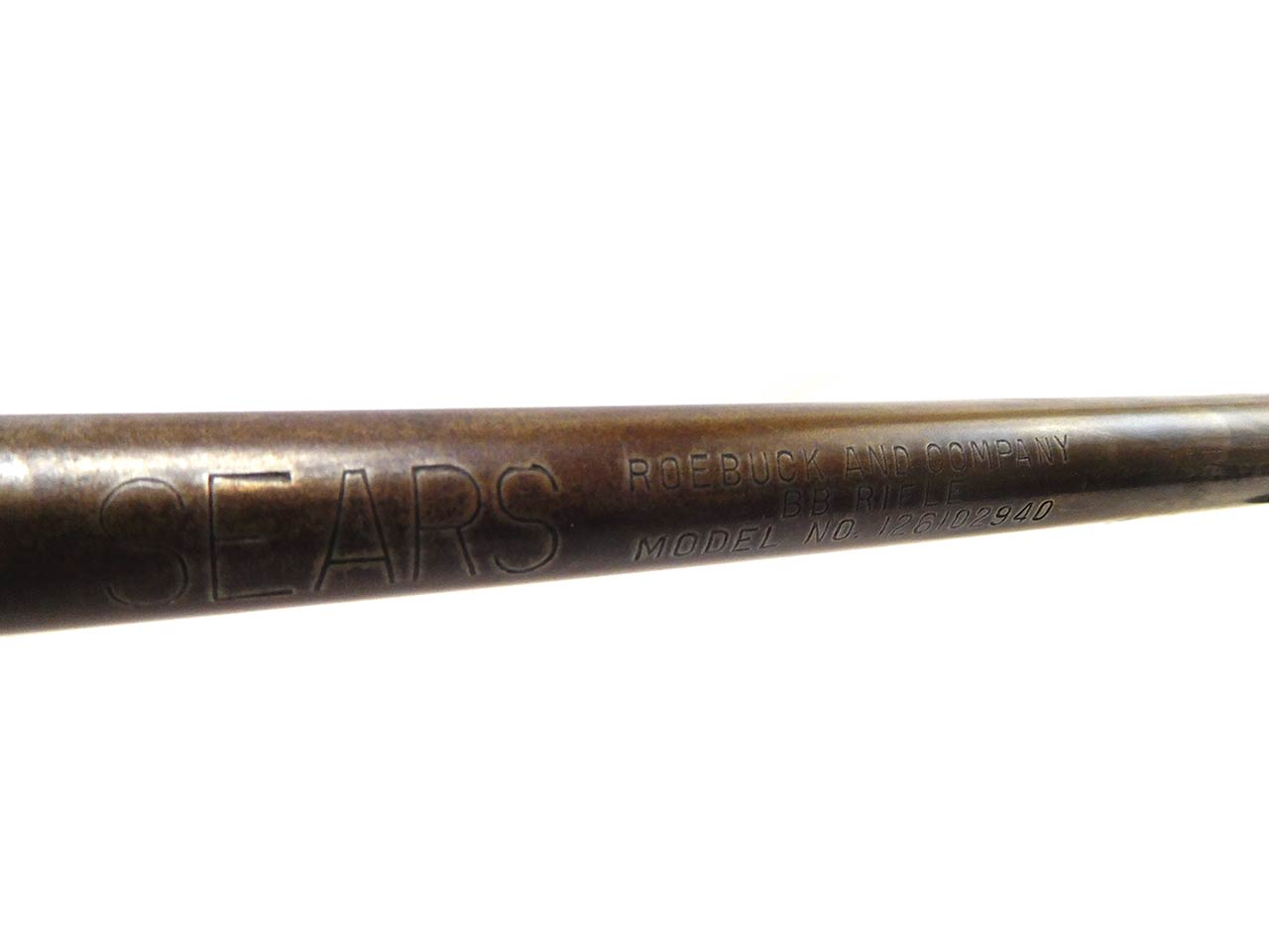 The Sears Model No. 126102940 is a Crosman V-350 made by Crosman for Sears, a spring-piston 22 shot BB repeater with a slide cocking barrel, and one piece wood stock. They were manufactured between 1961 & 1969.