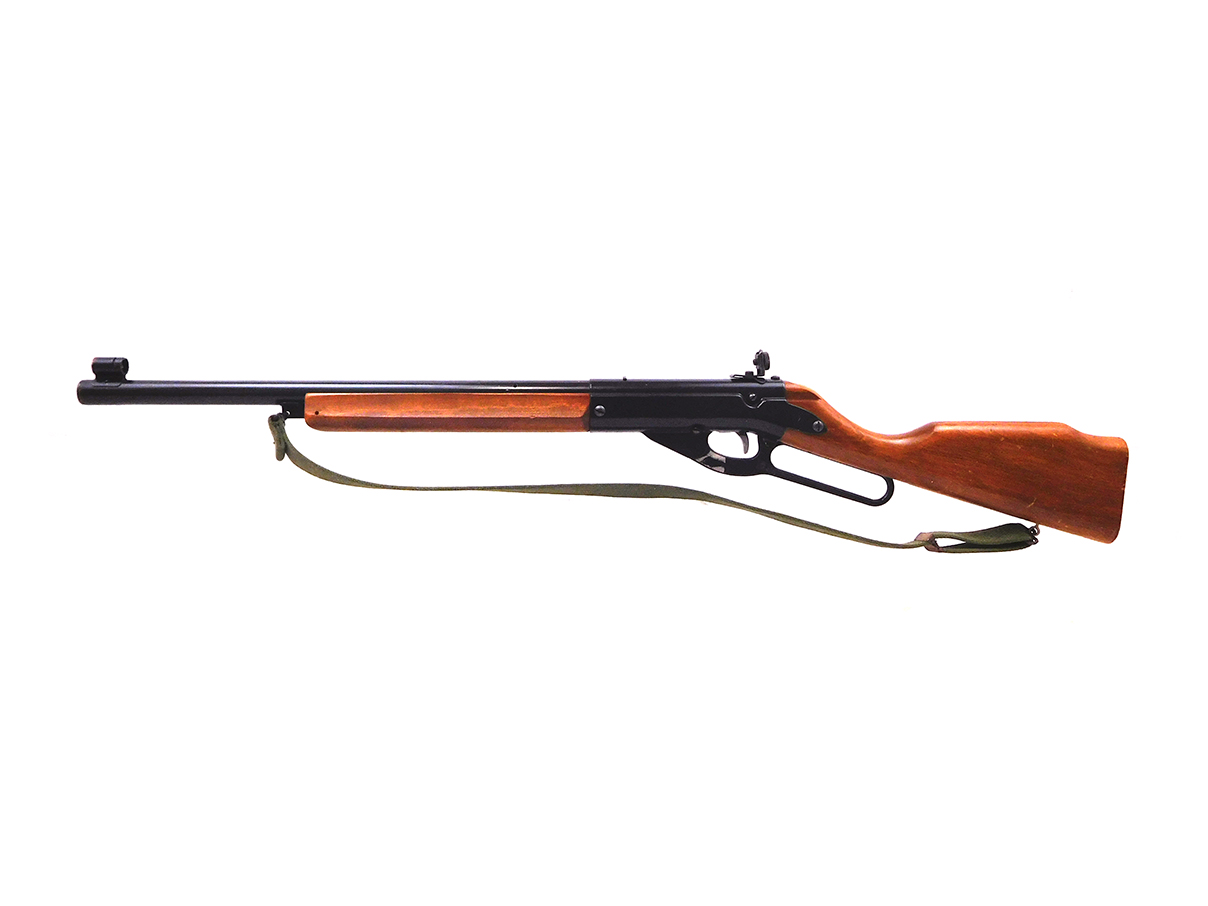 Lever action BB repeater with 50 shot spring loaded magazine. The Daisy 99 has long been the choice for serious young target shooters. The Daisy 99 was made from 1959 to 1967. It has a rear peep sight with hooded front sight (includes insert). This one includes a sling and has a medallion in the stock.