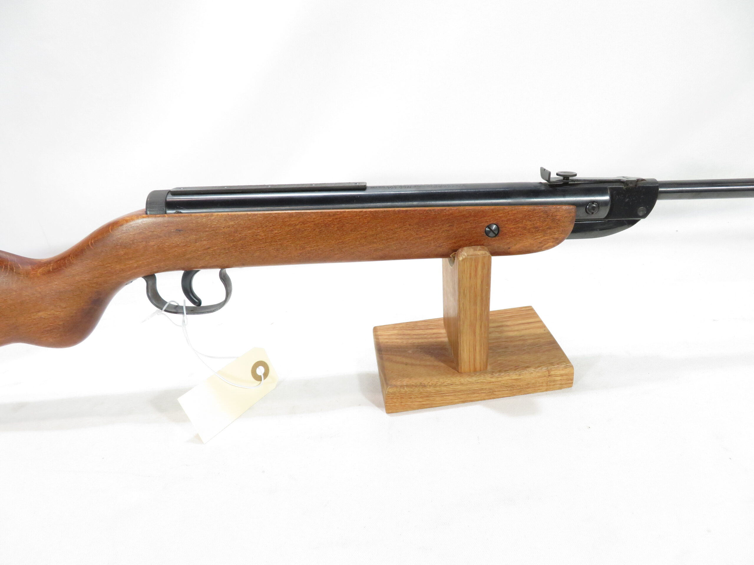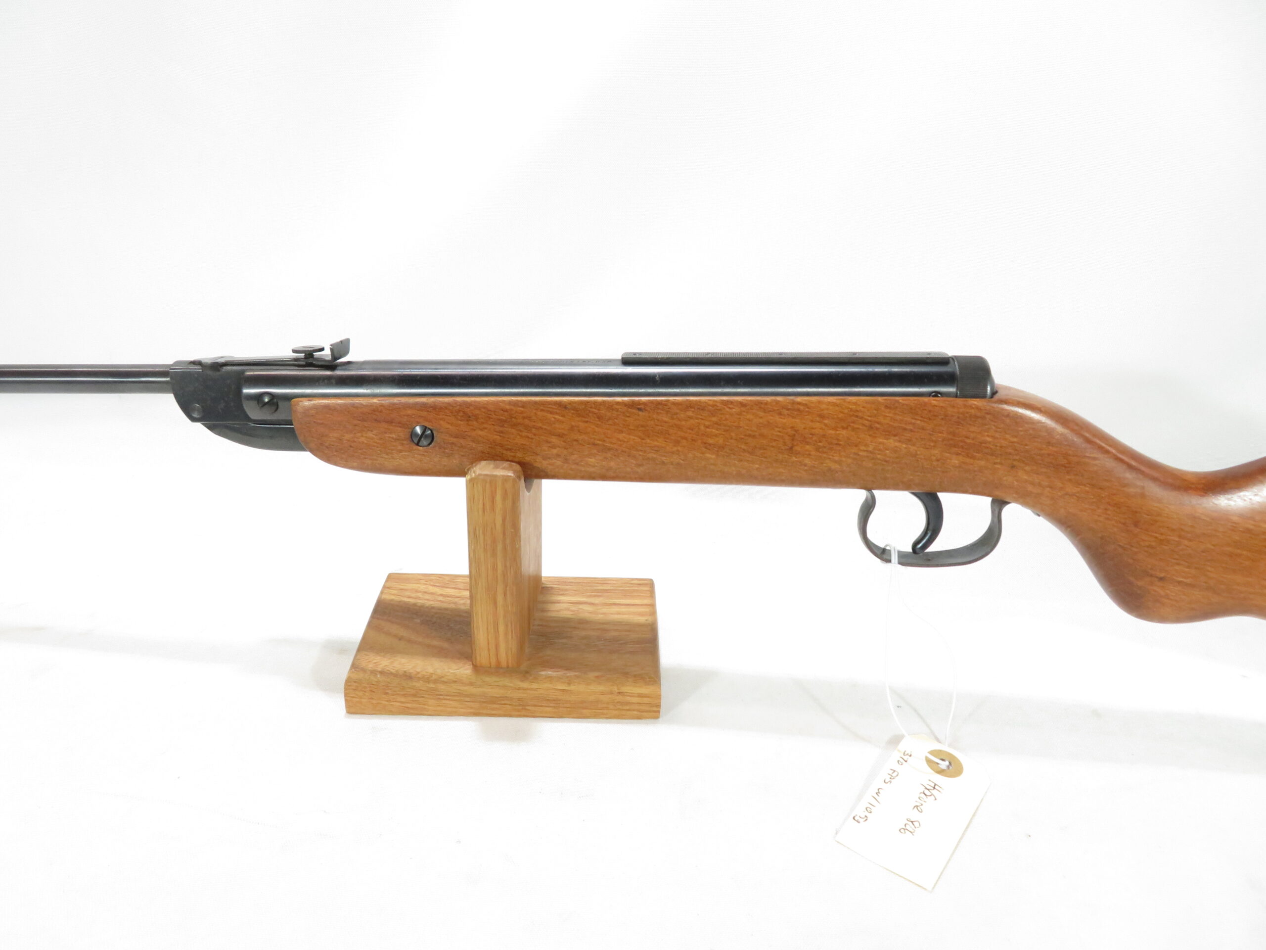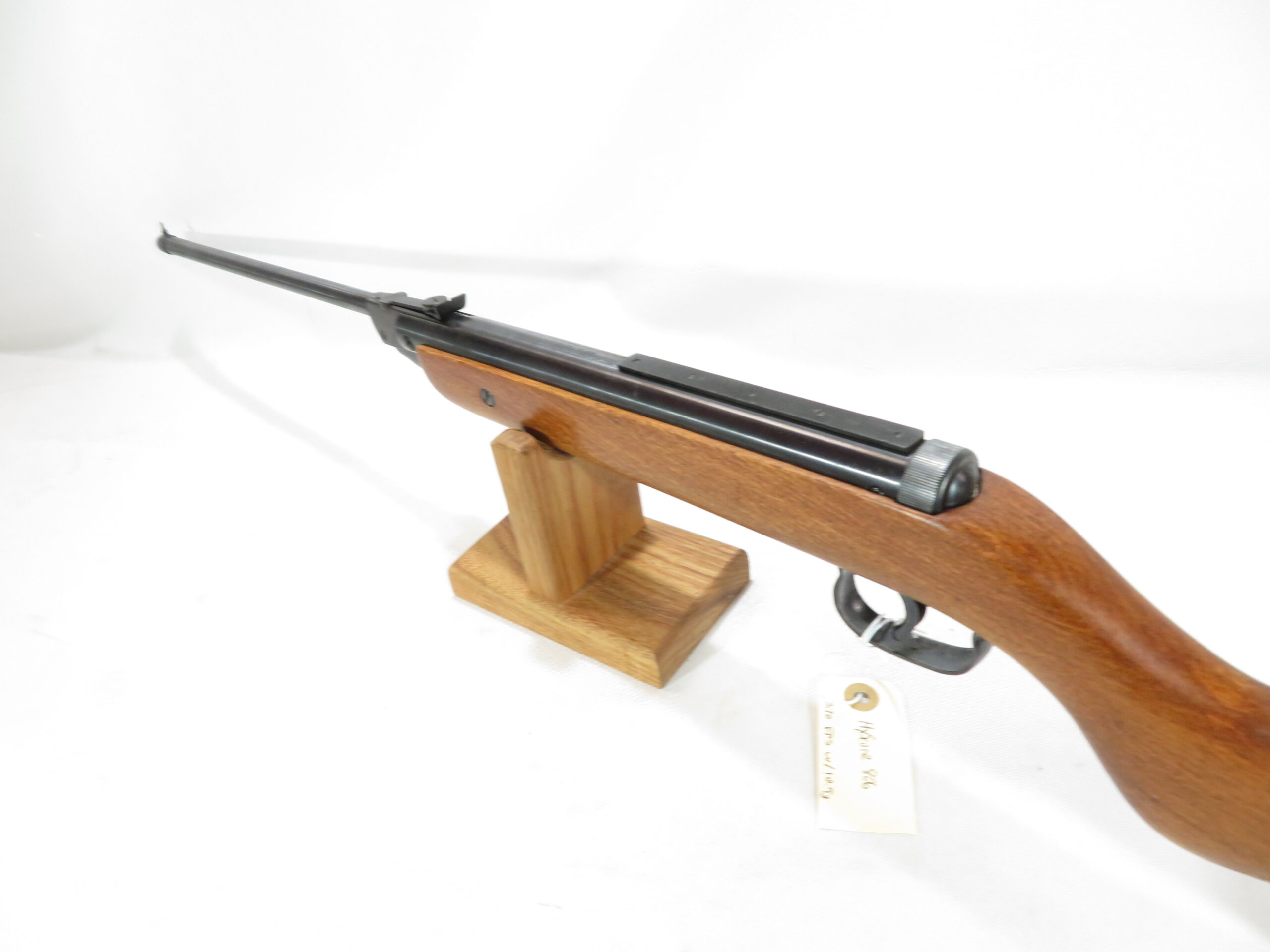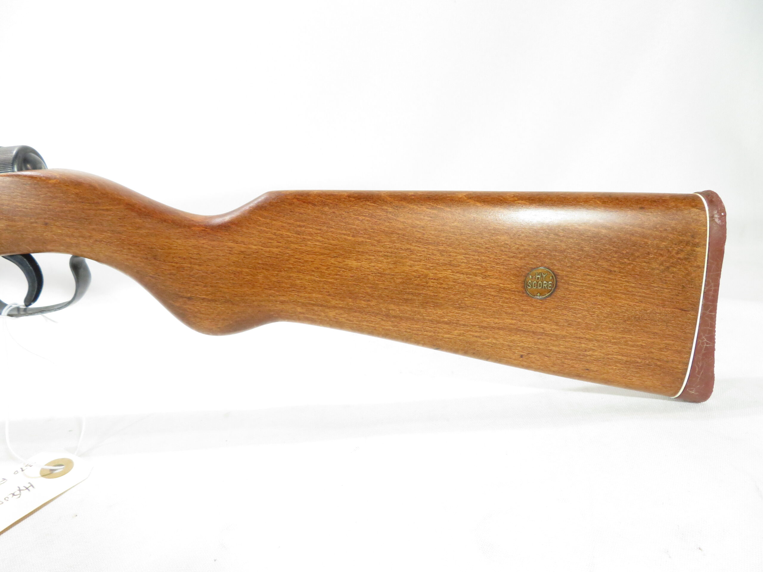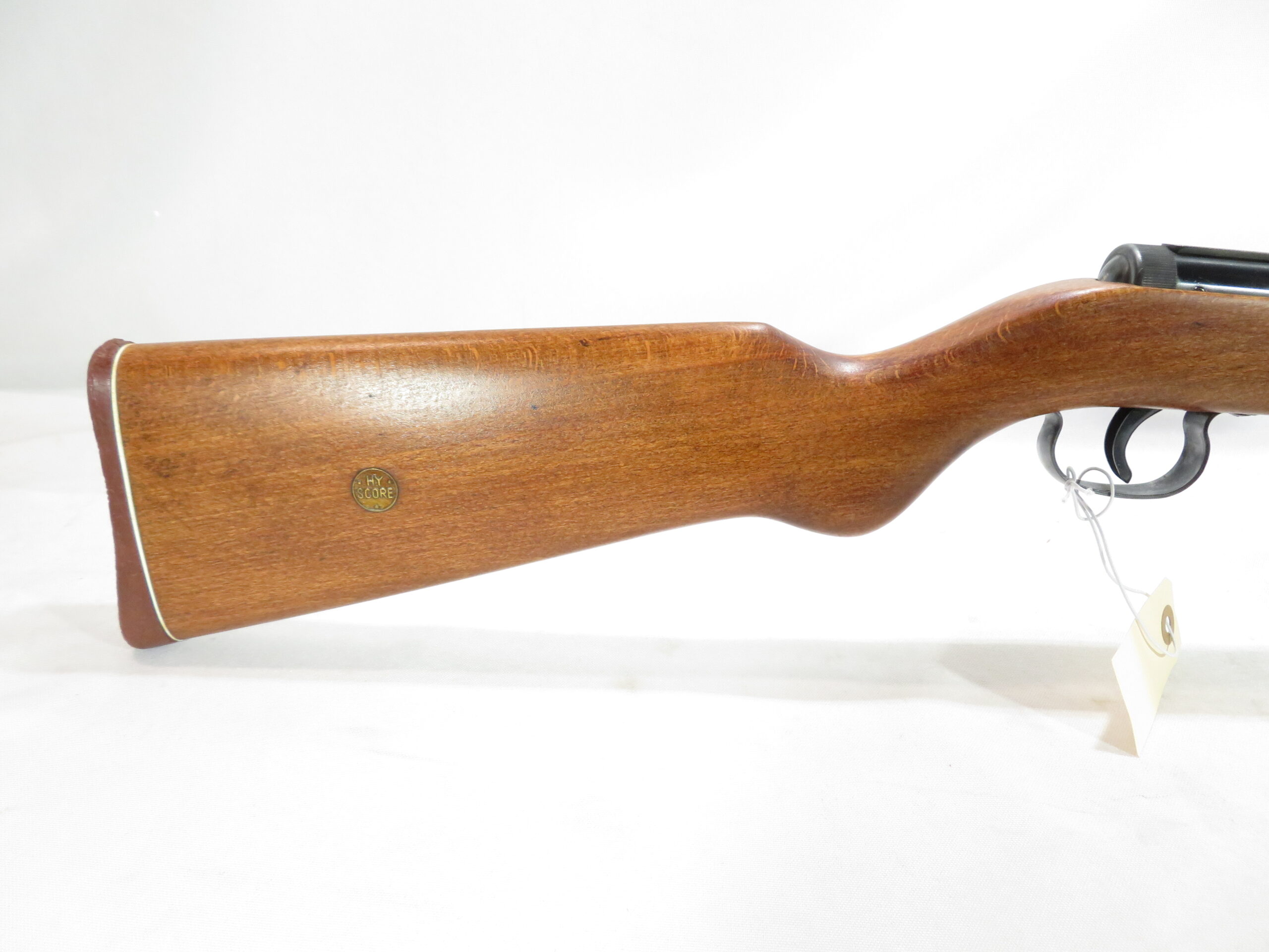 The Hy Score 806 is a .177 caliber break barrel air rifle with a wood stock. The stock very good condition, looks new.