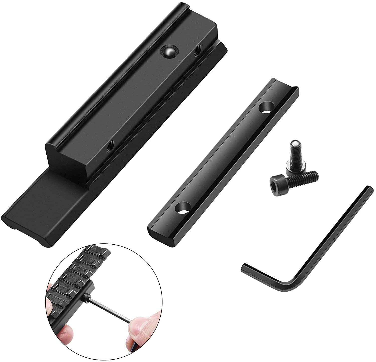 - ✌ Converts 11mm Dovetail to 21mm Picatinny Rail – 2.94 inches length at the base, the picatinny rail extends 3.94 inches allowing for more flexible optics placement.