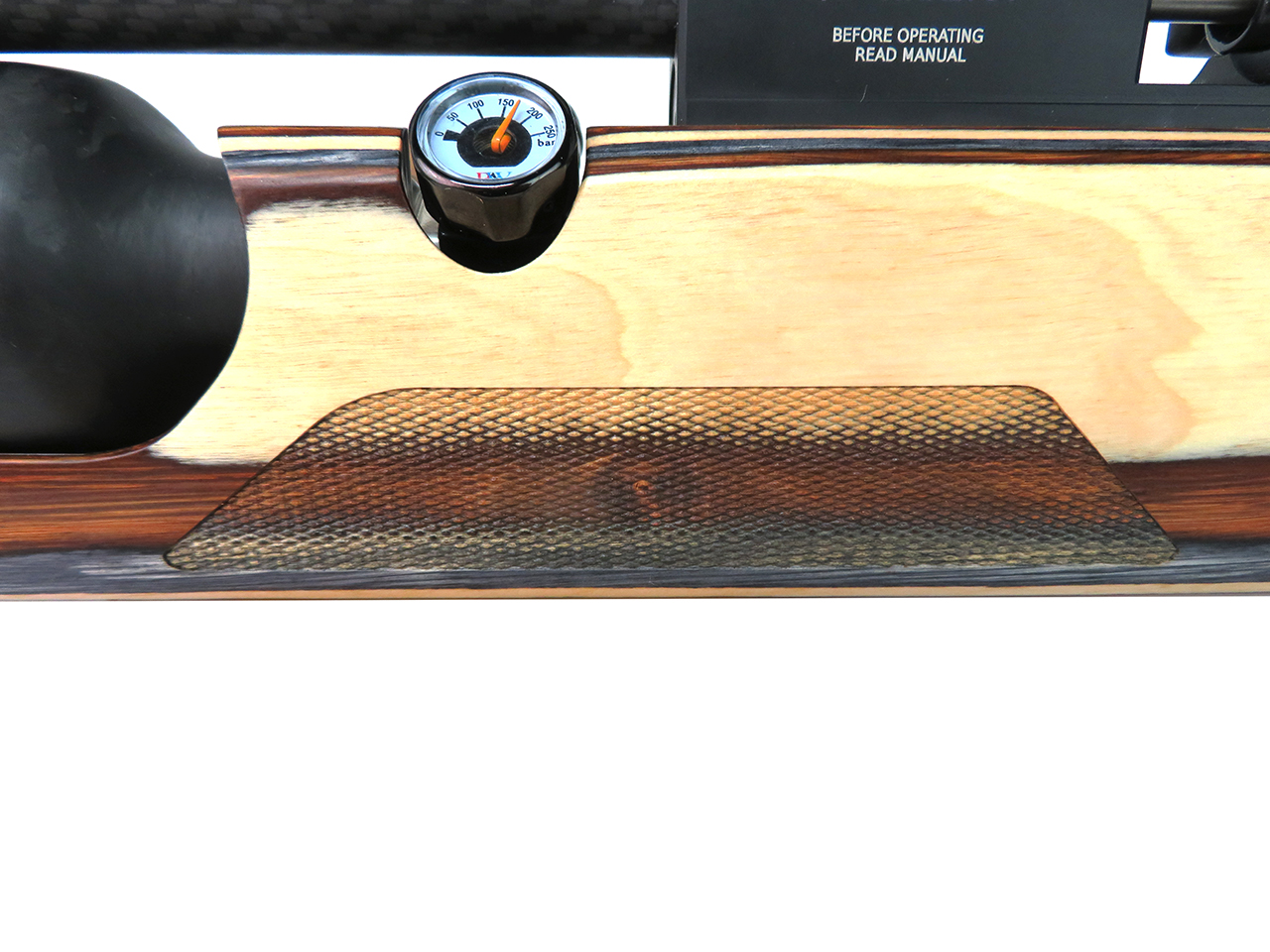 A rotary magazine is included. 12 rounds in .22 and .25 caliber, or 9 in .30 and 7 in .357 cal. It also features a side lever cocking mechanism for a smooth effortless action. The HM1000x LRT’s trigger is a fully adjustable version of RAW’s TM1000 target trigger with safety catch and hardened polished steel parts.