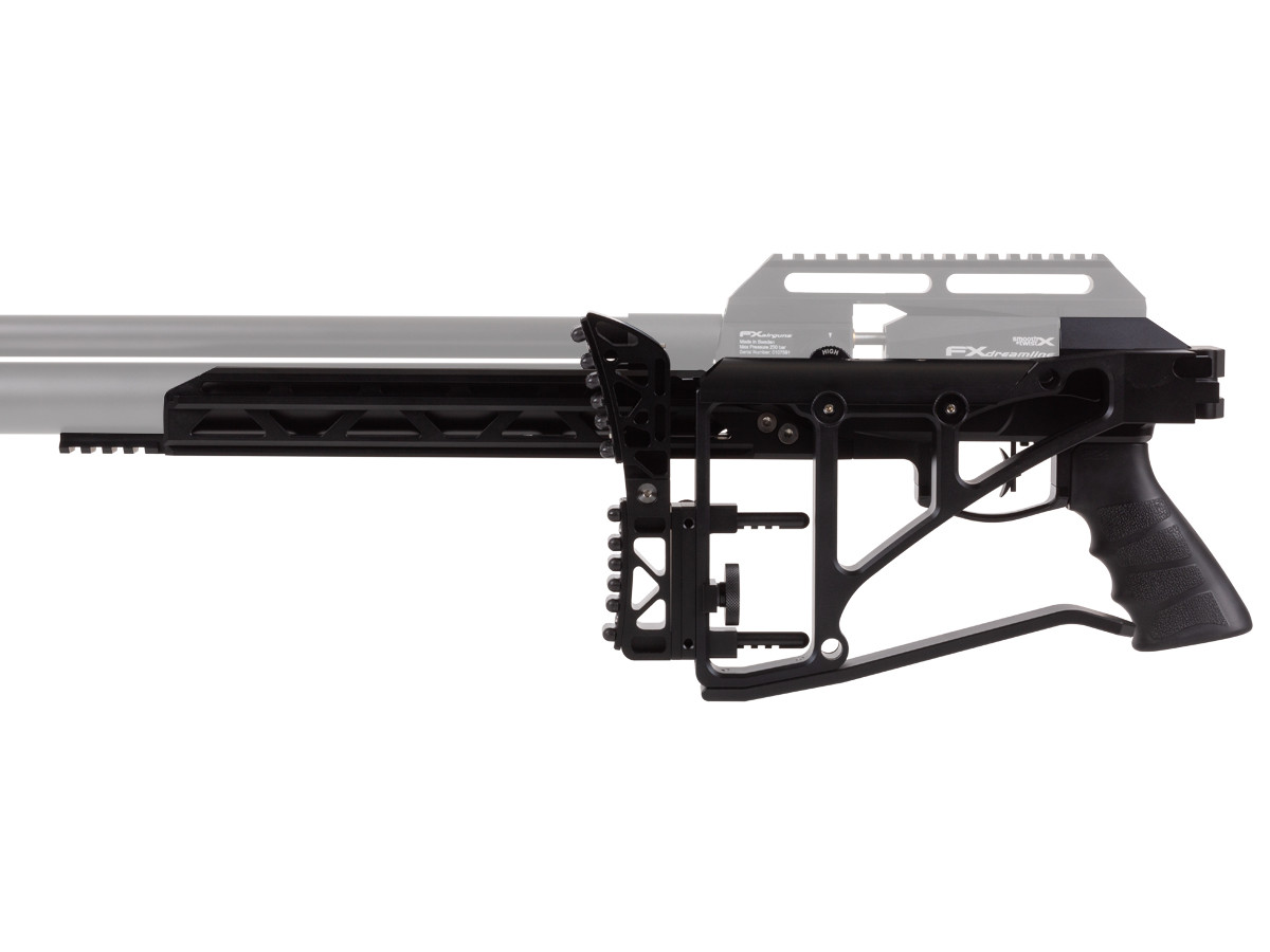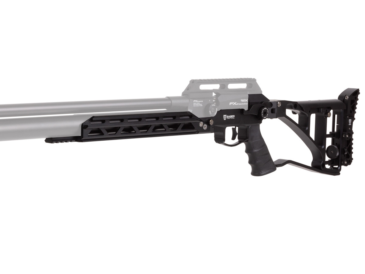 The Saber Tactical Dreamline Tube Chassis upgrades FX Dreamline models with standard air tubes to a more functional and tactical stock. It adds a combination Arca-Swiss and M-LOK accessory rail, plus a forestock Picatinny rail, giving supreme flexibility for attaching stock accessories such as bipods.
