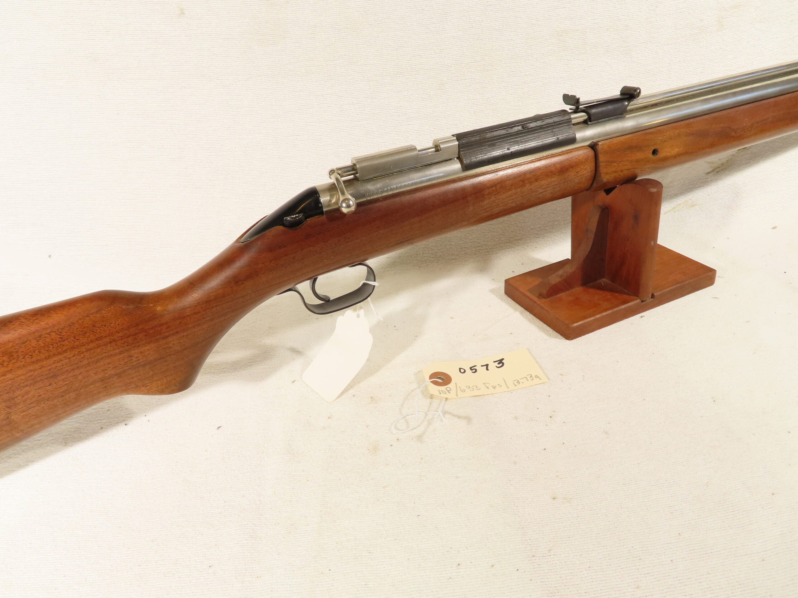 The metal retains about 95% of the original finish. Looks good. The wood stock & forearm are original. No chips or cracks. Looks good. The breech and air tube have been re-soldered.