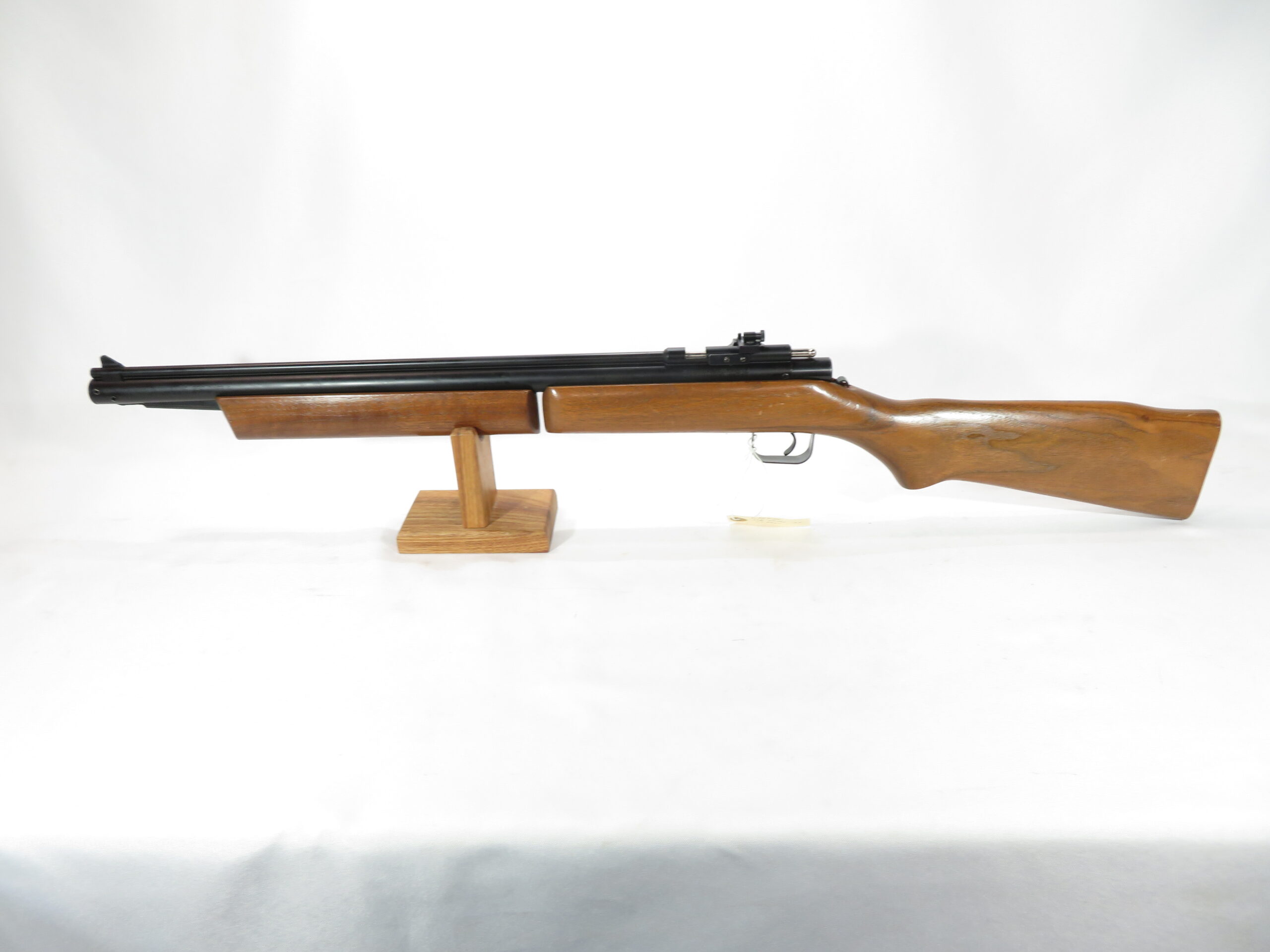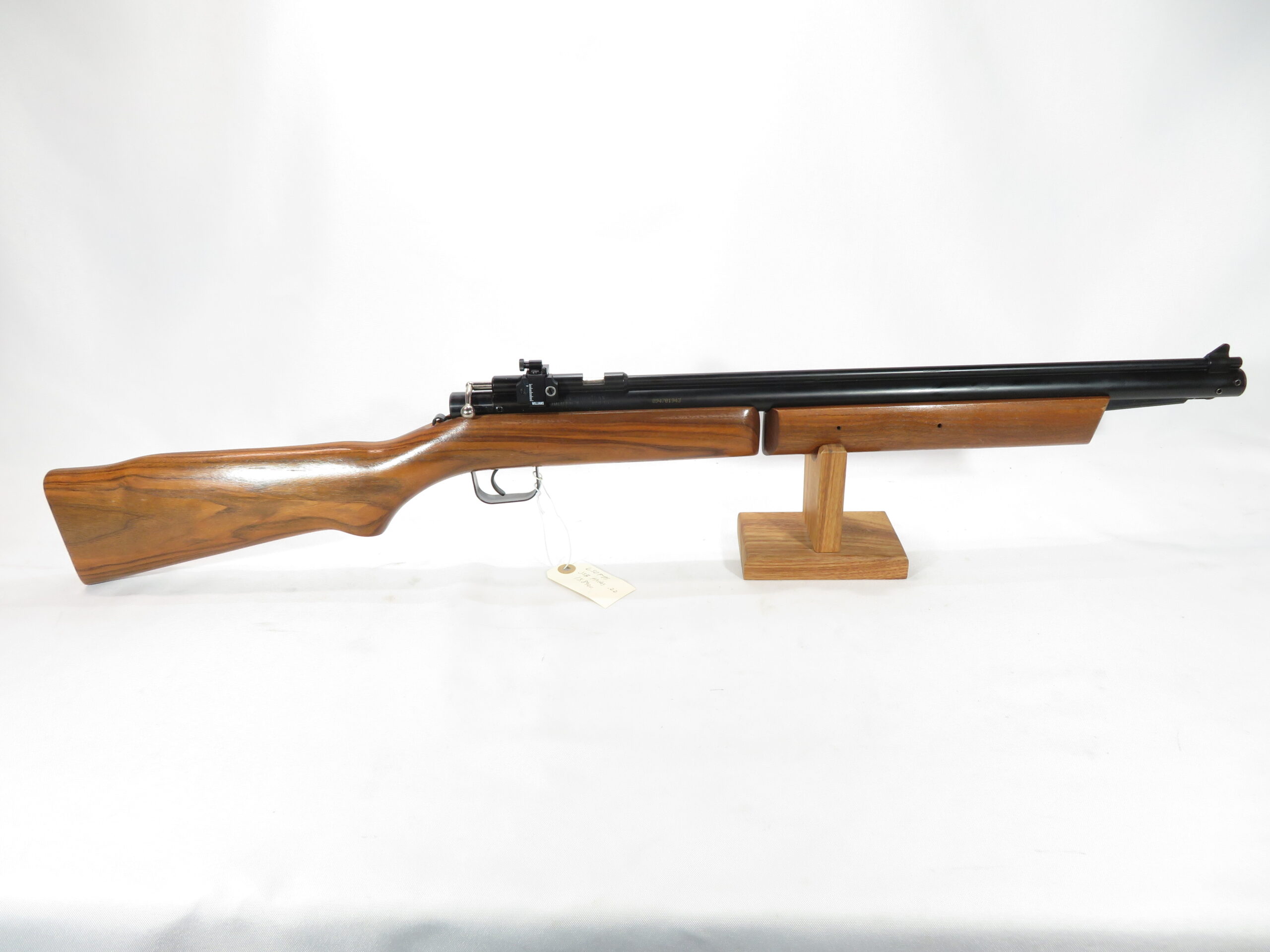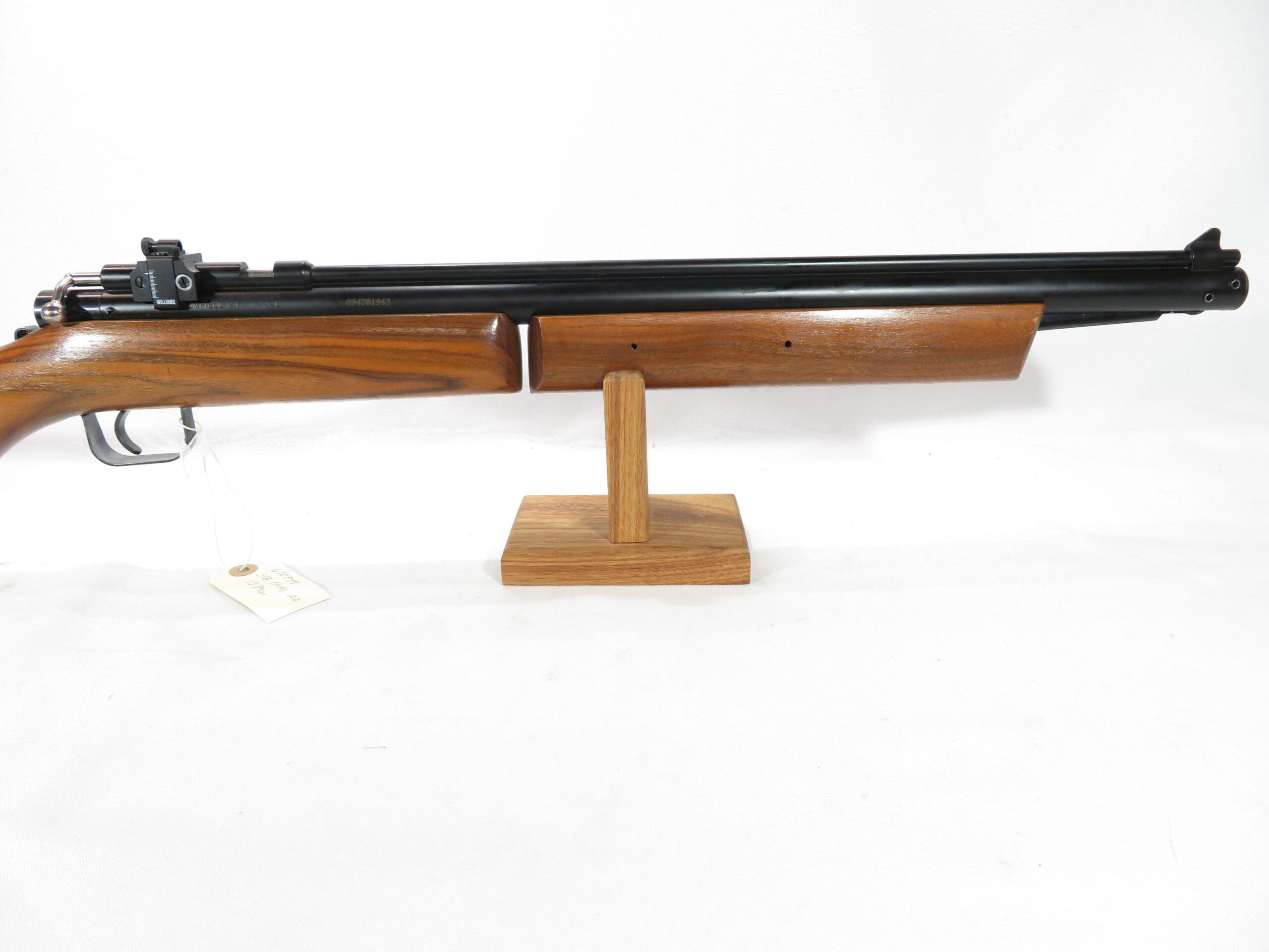 These vintage 392 P’s had walnut stocks. The 392PA is a .22 caliber, single shot bolt action multi-pump pneumatic air rifle with adjustable Williams Peep sight.