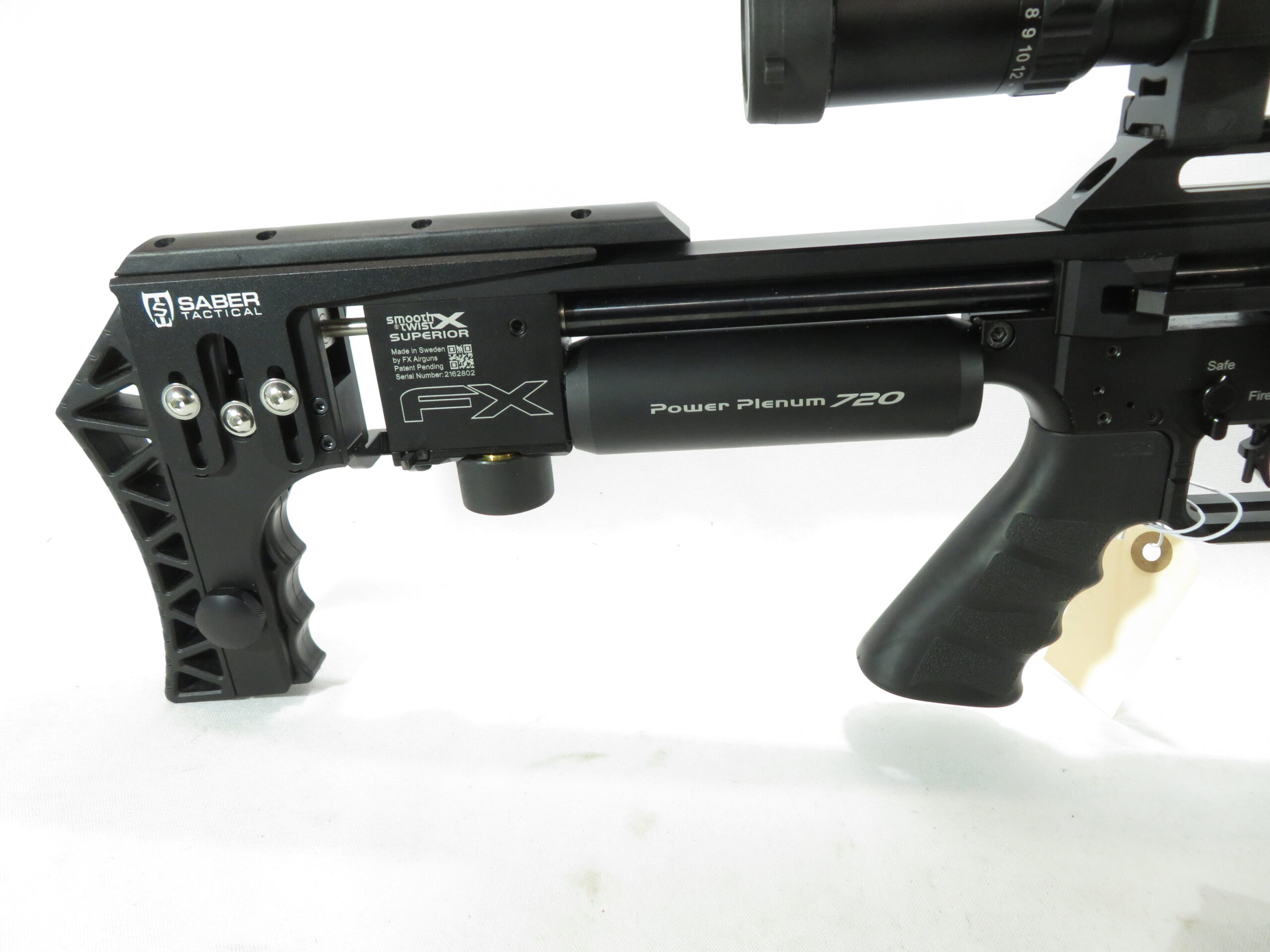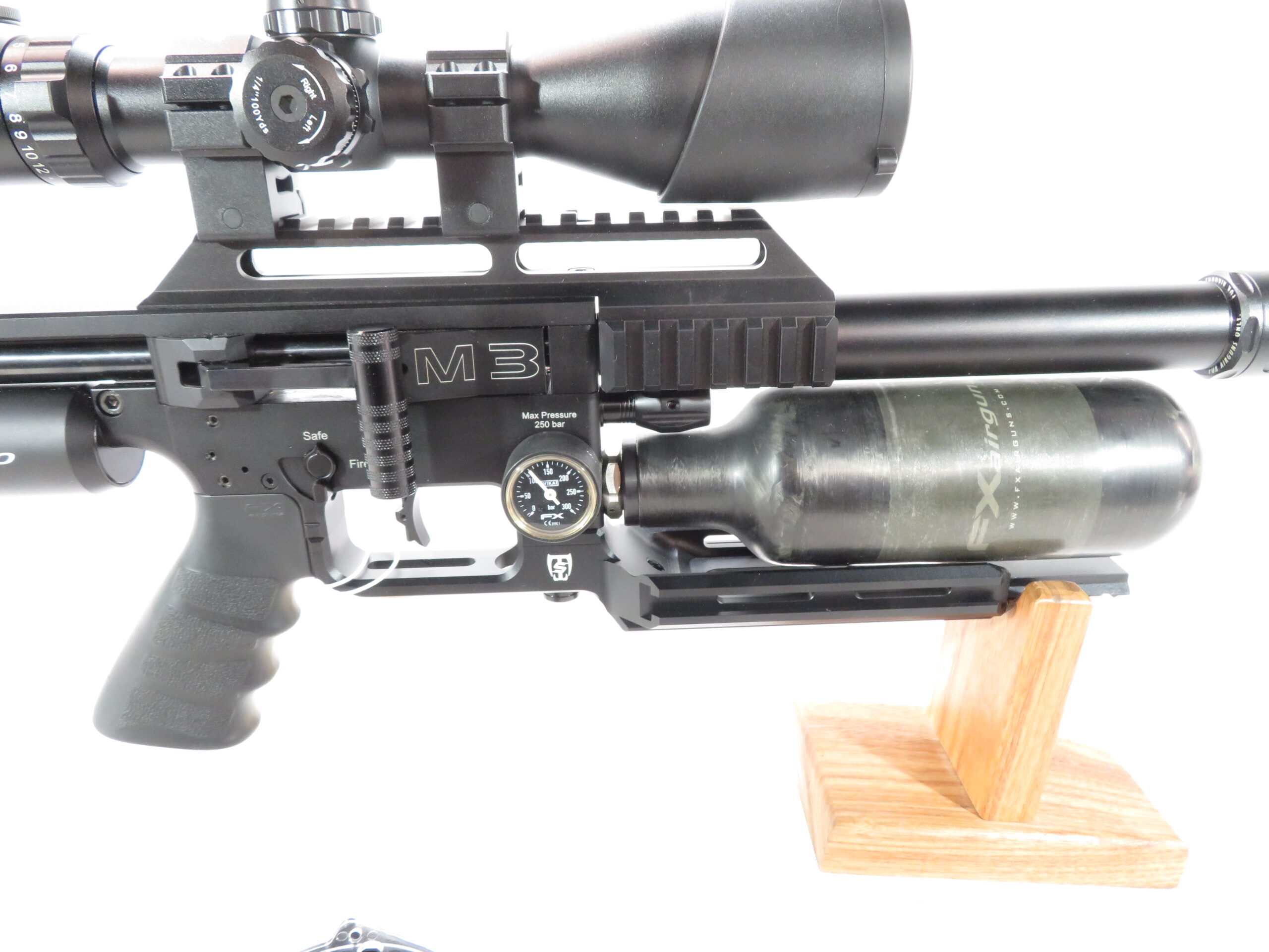 This gently used M3 was recently traded in. It’s in great shape, holds air, and shoots great!  Comes with Saber Tactical Compact Arca rail, and Adjustable Cheek Riser.