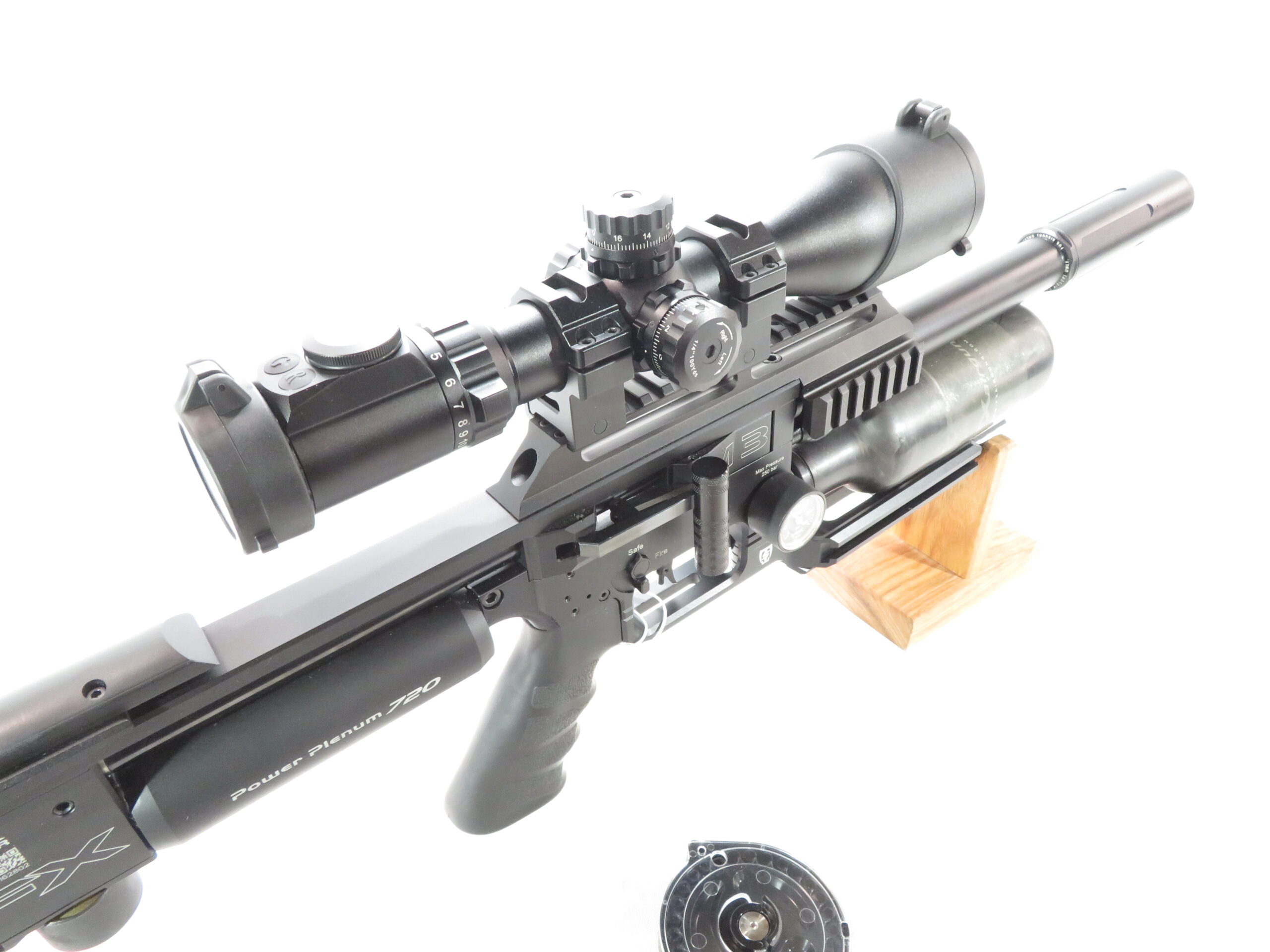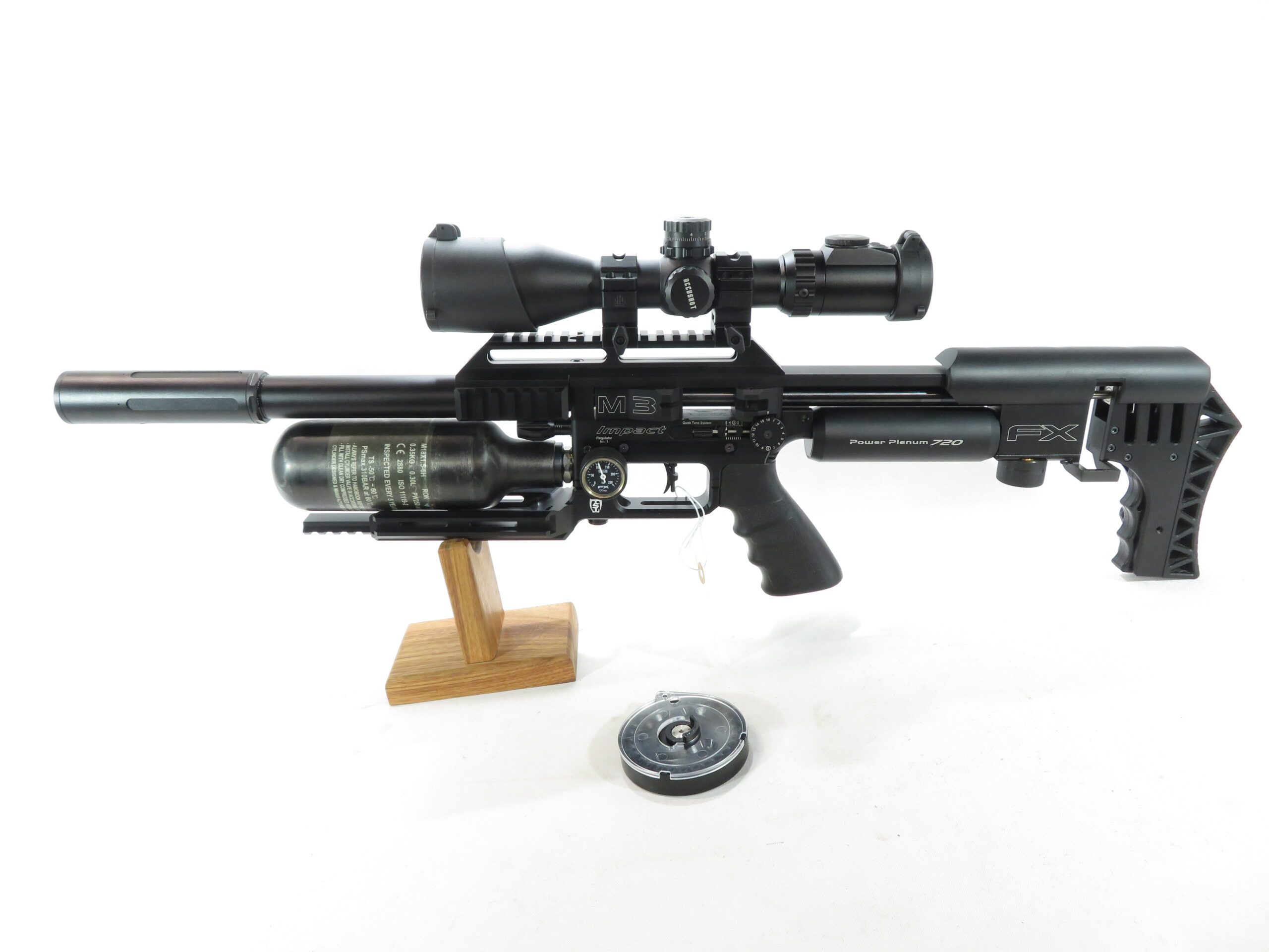 From a 250 BAR fill, you can expect up to 150 shots in .177, 110 shots in .22, 70 shots in .25 and 30 shots in .30 caliber. With plenty of energy to accompany those shot counts, you can expect up to 25 FPE in .177, 45 FPE in .22, 60 FPE in .25 and a whopping 80 FPE in .30! Long time fans and followers of the Impact platform may recall that early versions of the standard size rifle produced about those same specs, with a longer barrel and larger air cylinder. FX is able to achieve this impressive stat line thanks to the power plenum 720! Adding 72cc of firing chamber volume and new valving allows for these impressive numbers that simply couldn’t be achieved before this innovation.