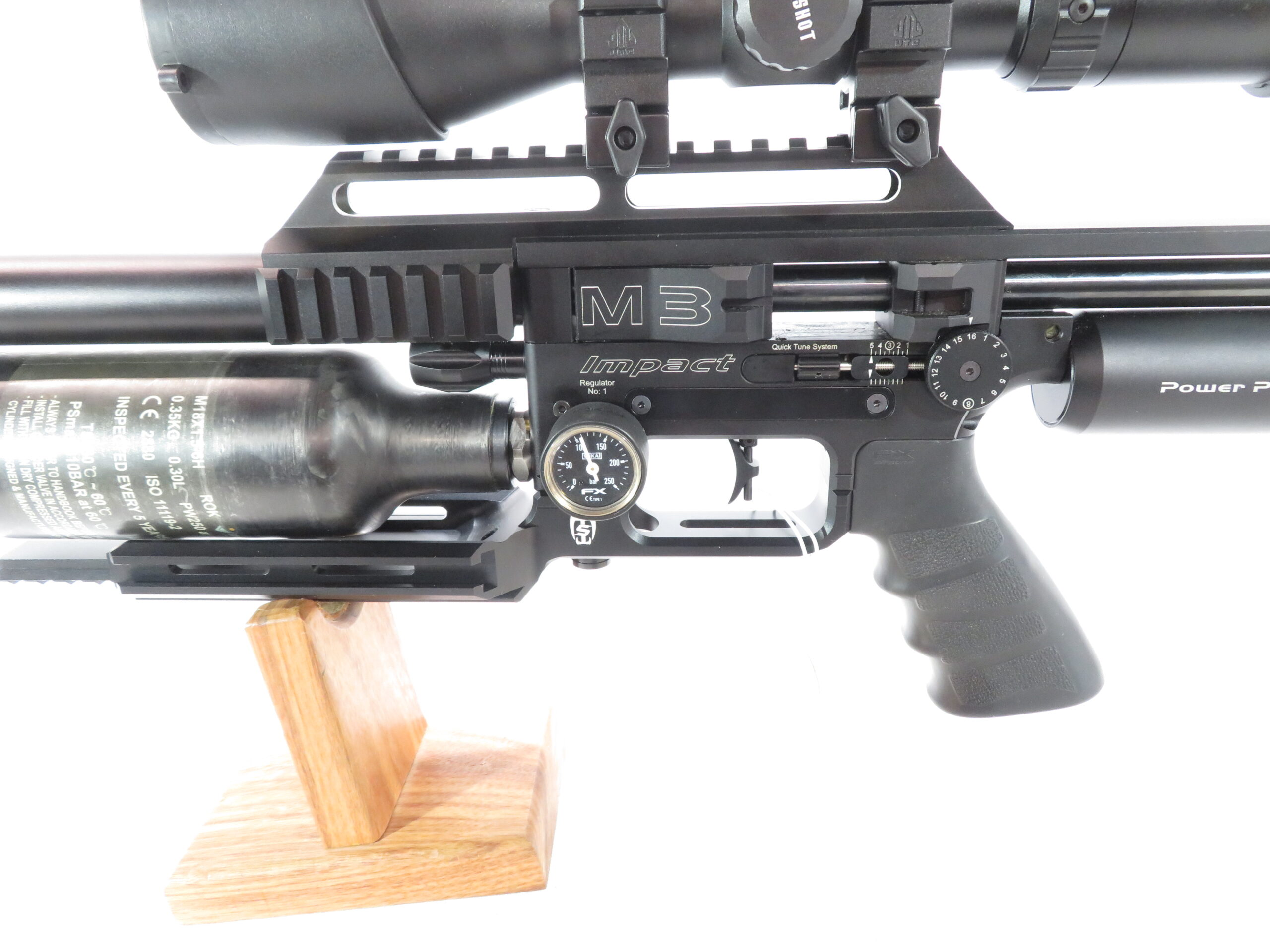 - Improved, Wika dual pressure gauges: one for air cylinder pressure, one for second regulator pressure. First regulator has a standard FX gauge.