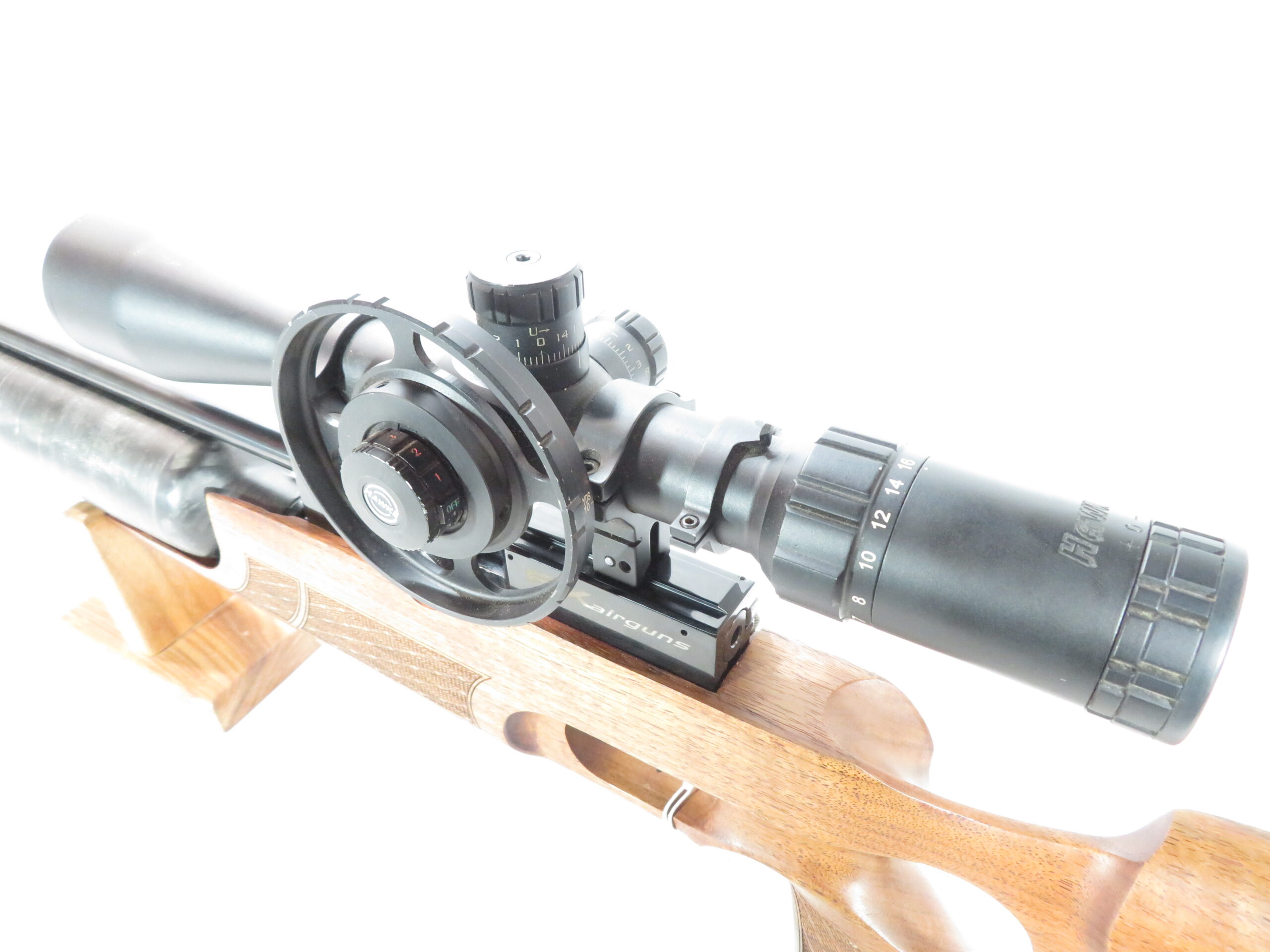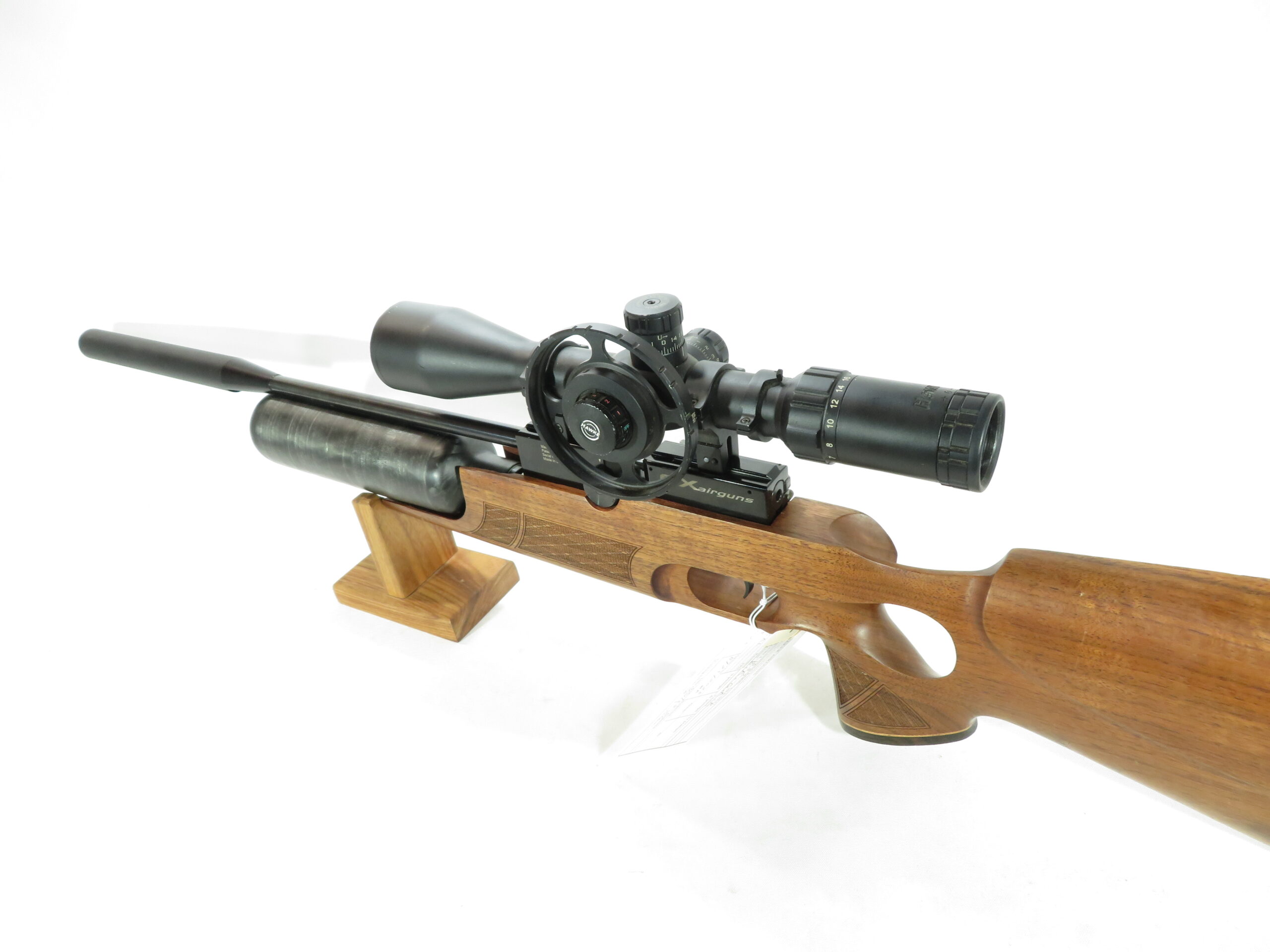Includes Hawke 4-16×44 Scope, illuminated, side focus.