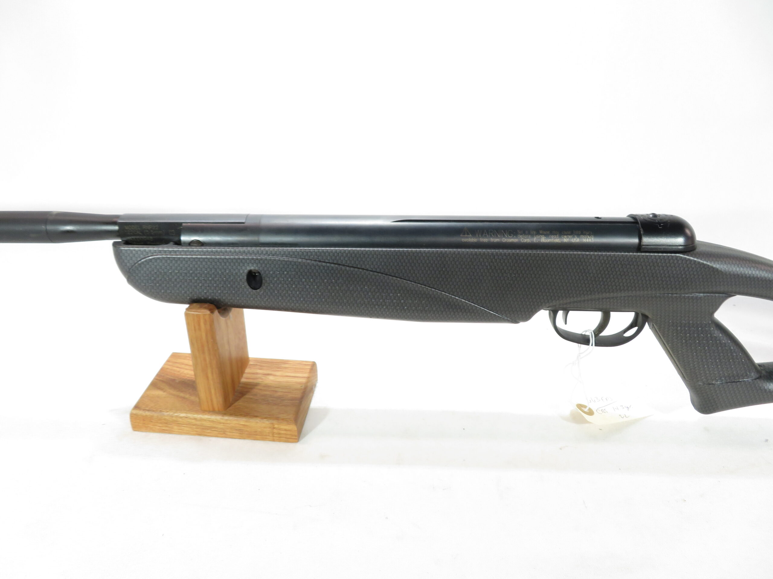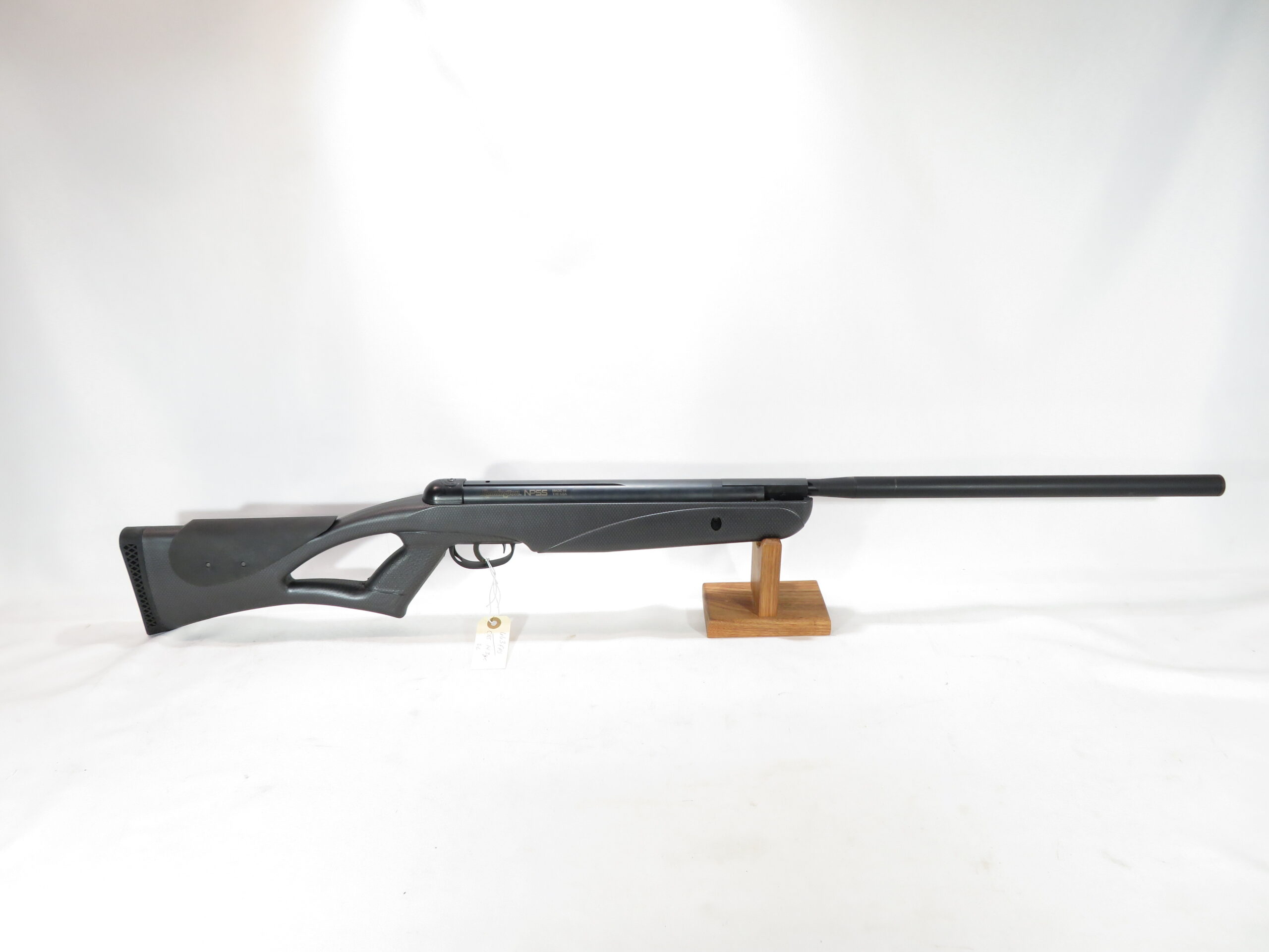 The Remington NPSS is a single shot single shot, gas-piston, break barrel pellet rifle with carbon fiber style stock. Optics include an 11mm dovetail scope rail.