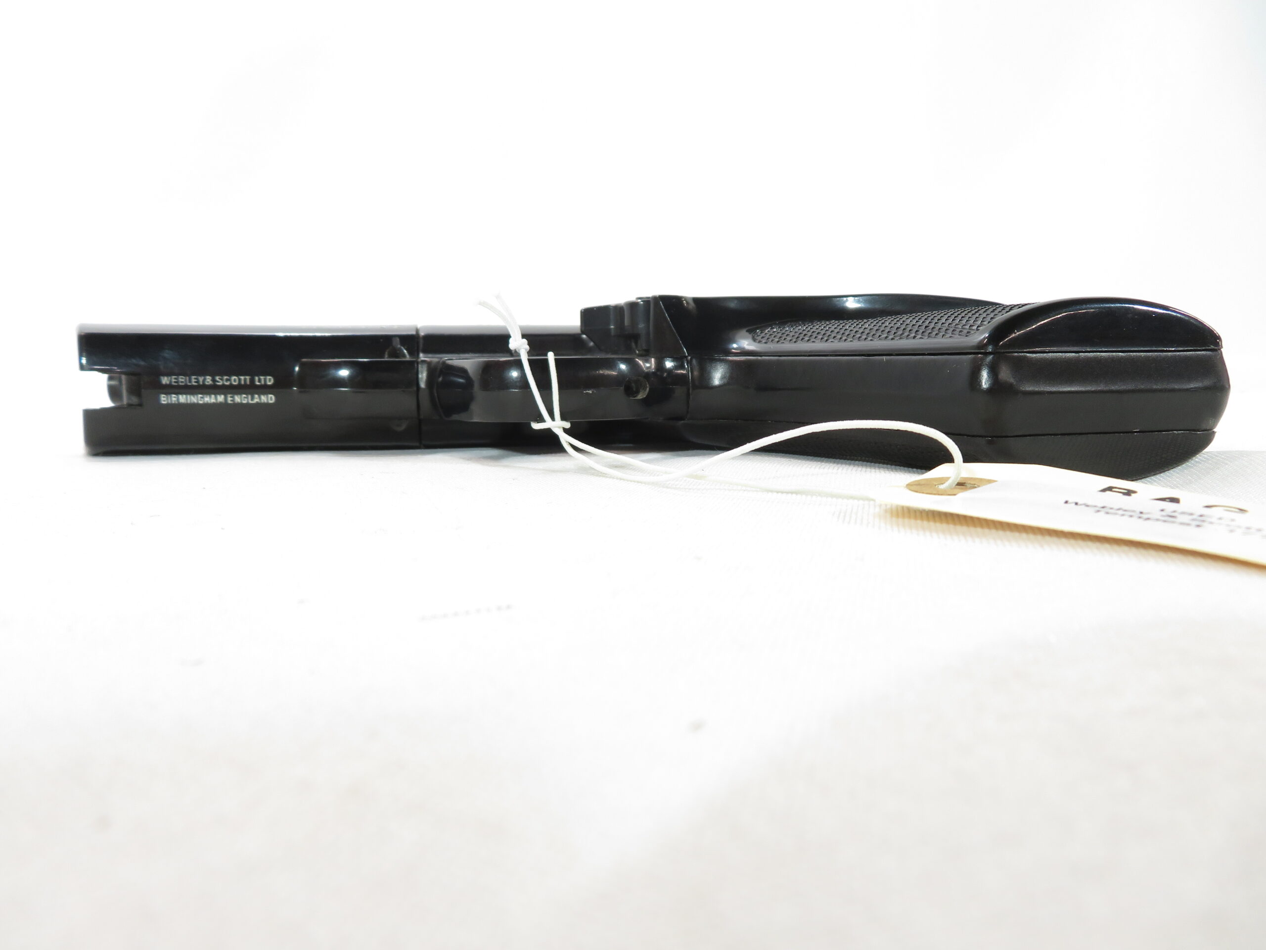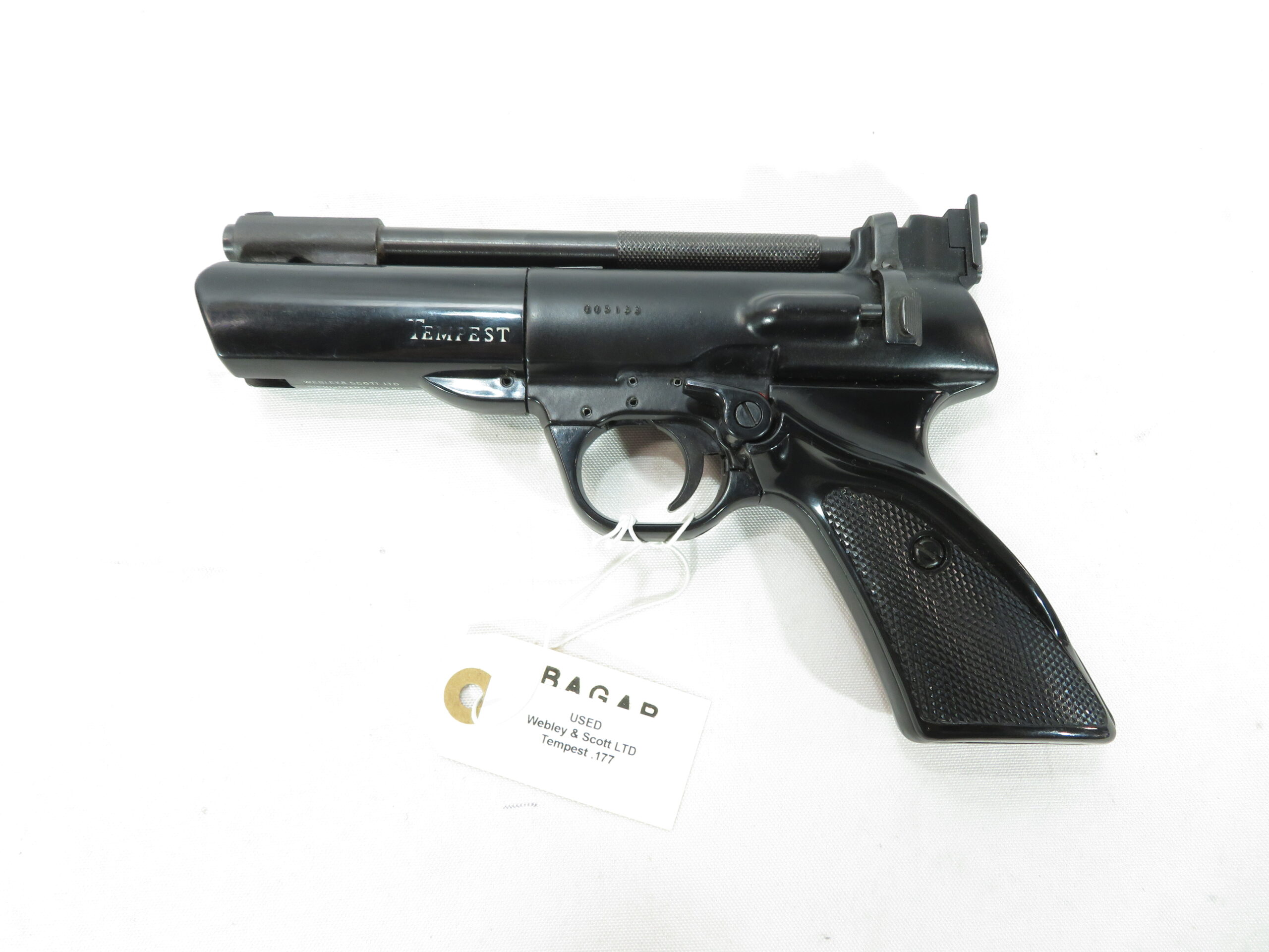 This Webley Tempest is a .177 caliber, spring-piston, barrel cocking pellet pistol. This one’s marked “BIRMINGHAM ENGLAND”.